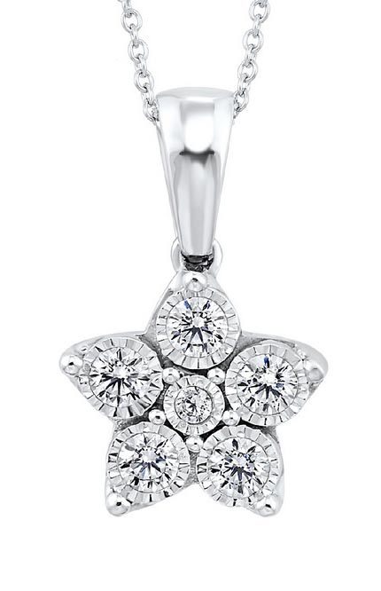 Five Diamond .04 Ct. Sterling Silver Illusion Plates Necklace 10131