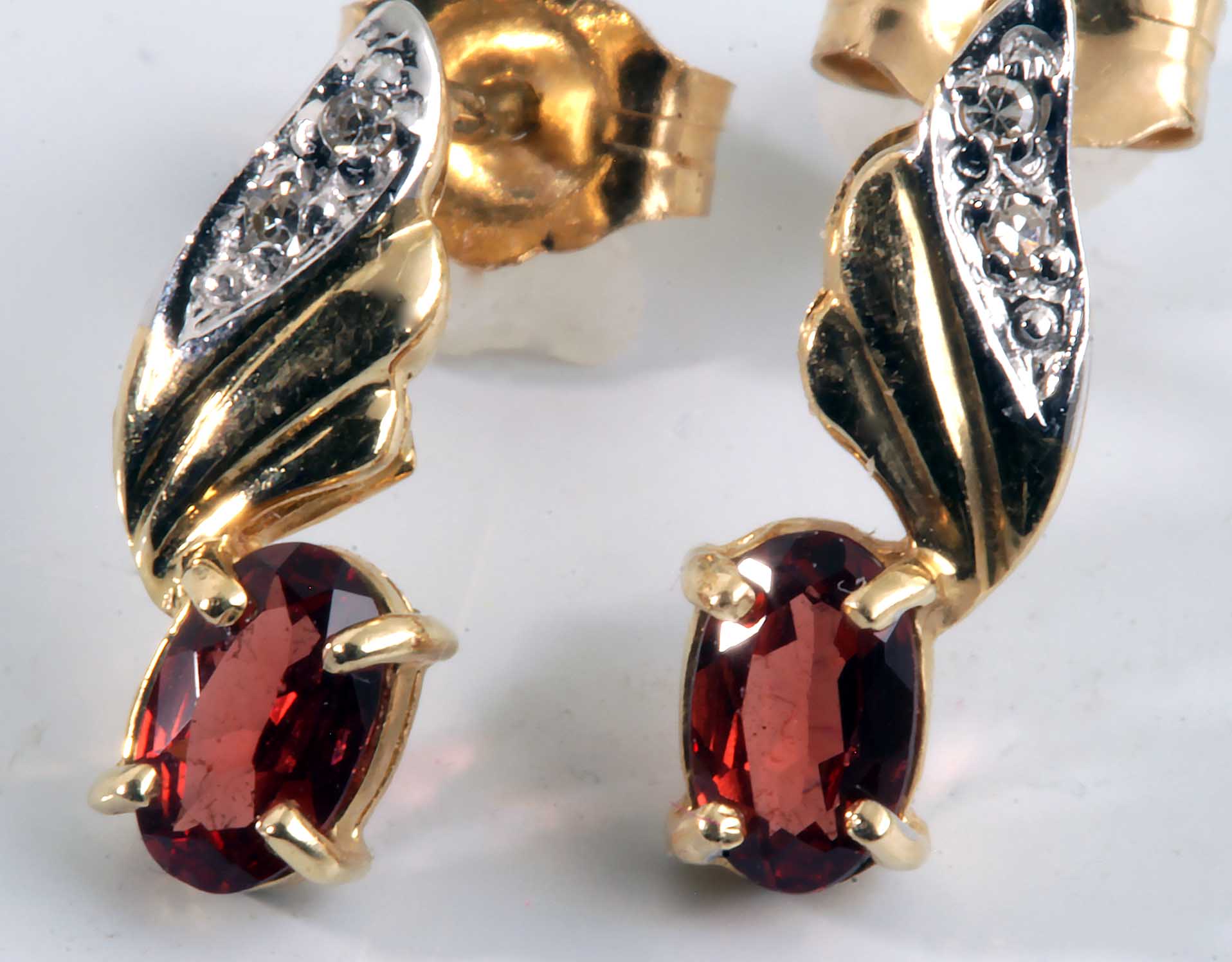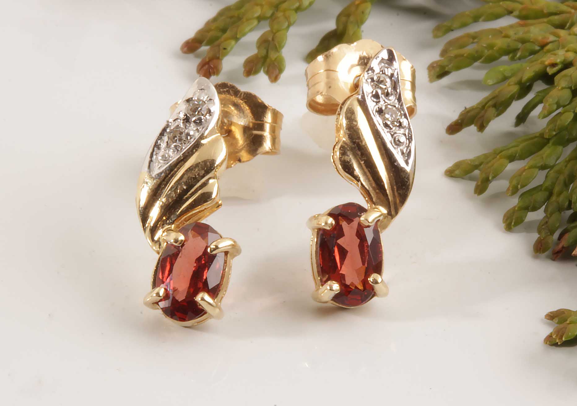 Garnet & Diamond Earrings YG #11622 .02TDW 5×3 Garnets #210-00082