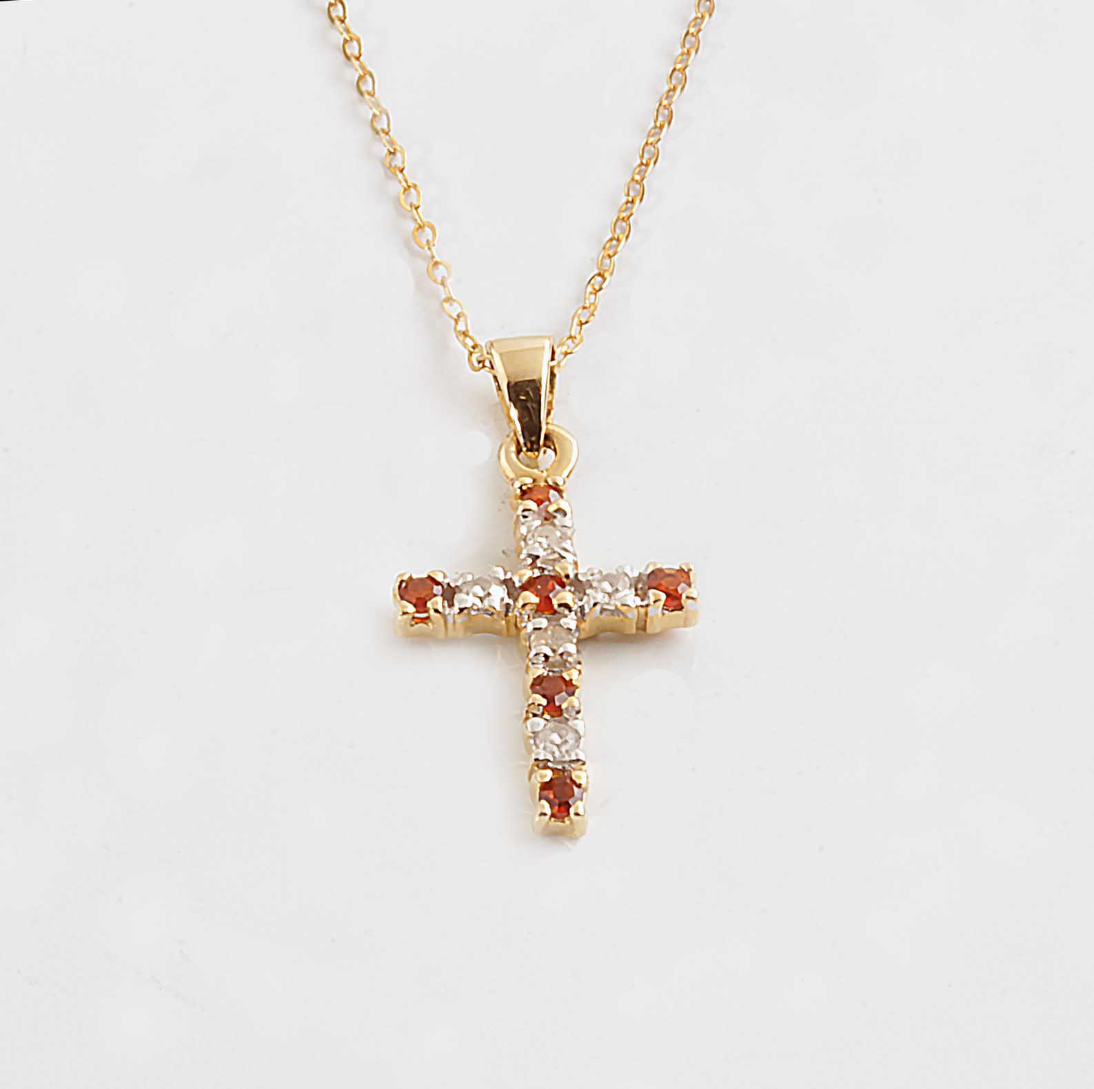 Be the first to review “Garnet & Dias Cross 14KYG Pendant .05TDW”