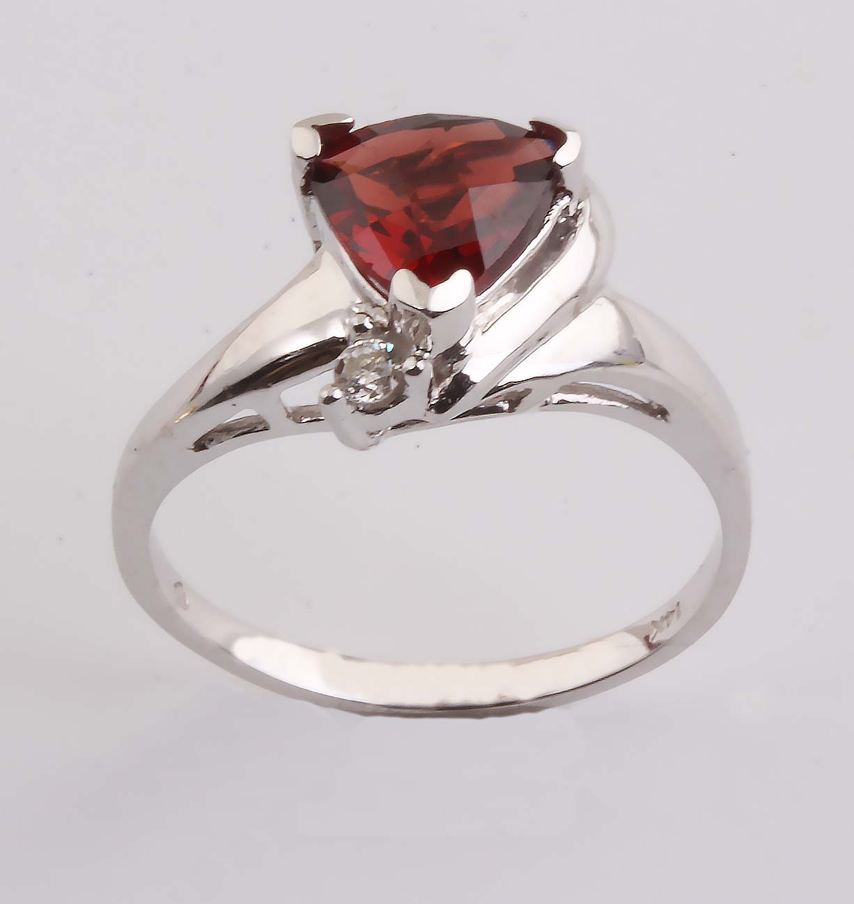 Garnet Trillion Checkerboard Cut Ring w/ .04TDW 10269