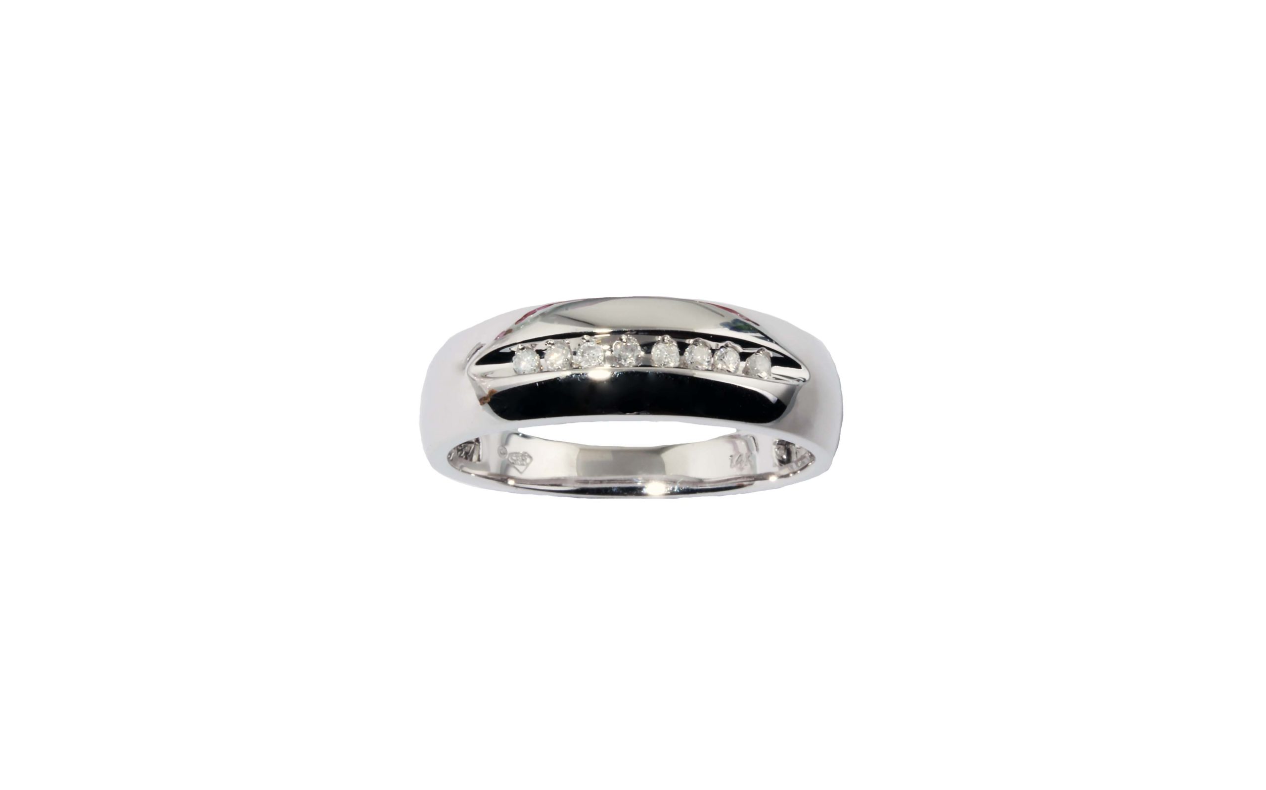 Gents Diamond (0.10ctw) Wedding Band in 14K White Gold – Stock# 7695 Band width: 7mm