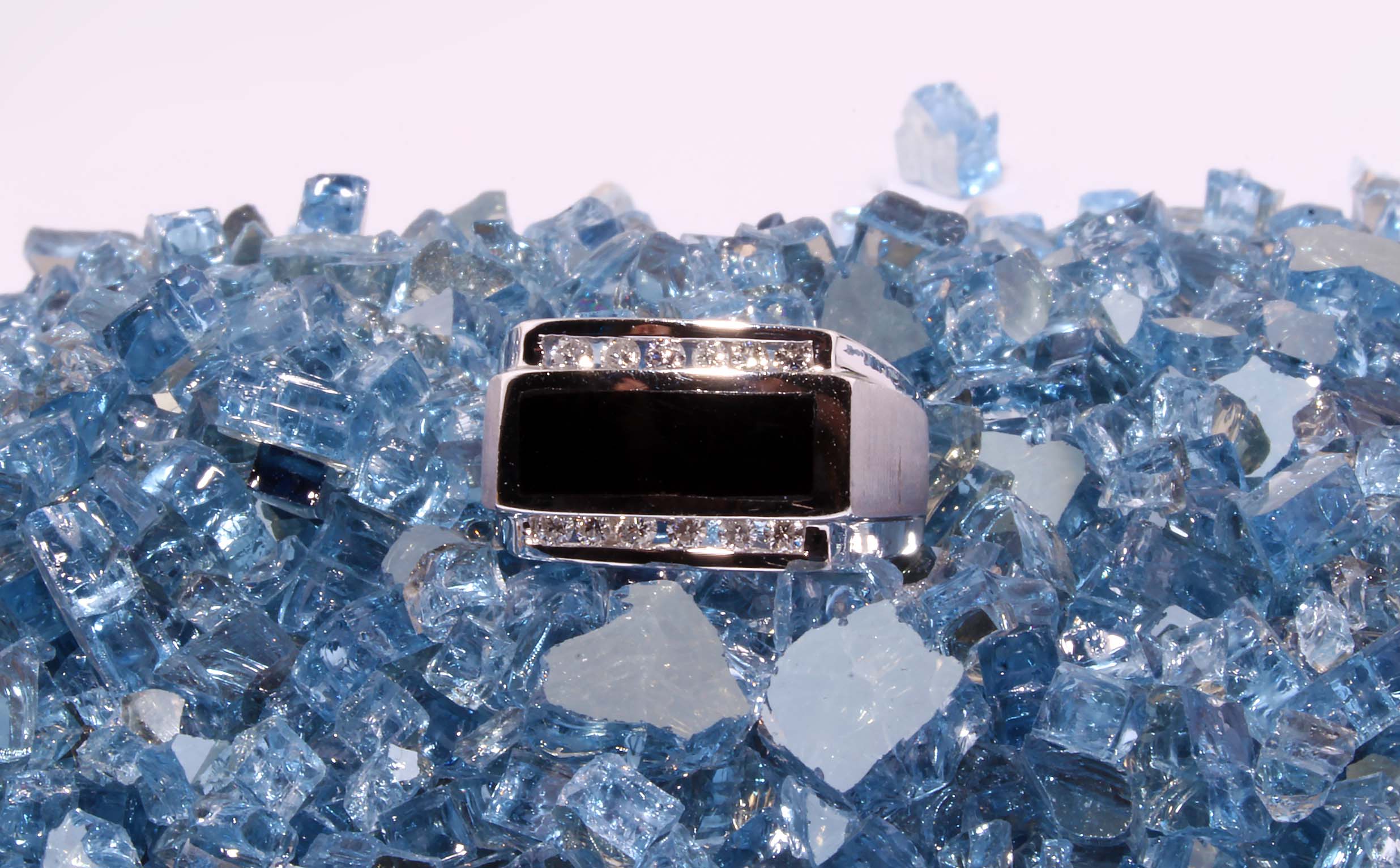 Gents Diamond 0.39 ctw and Onyx Ring in 14K White Gold – Stock# 8223