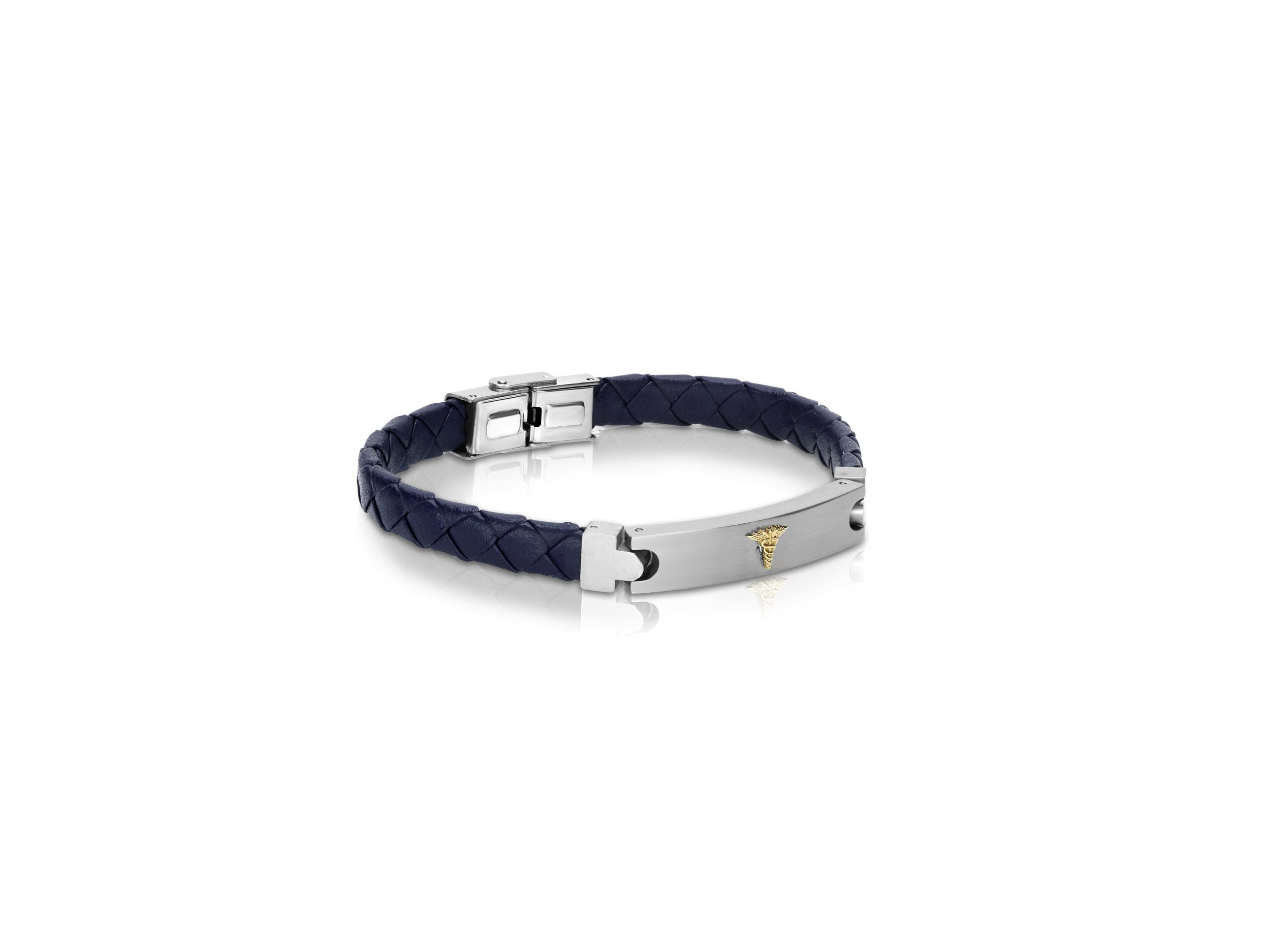 Gent’s Stainless Steel Gold IP Plated Medic-Alert ID Bracelet w/ Navy Leather Braided Band – #059-00030