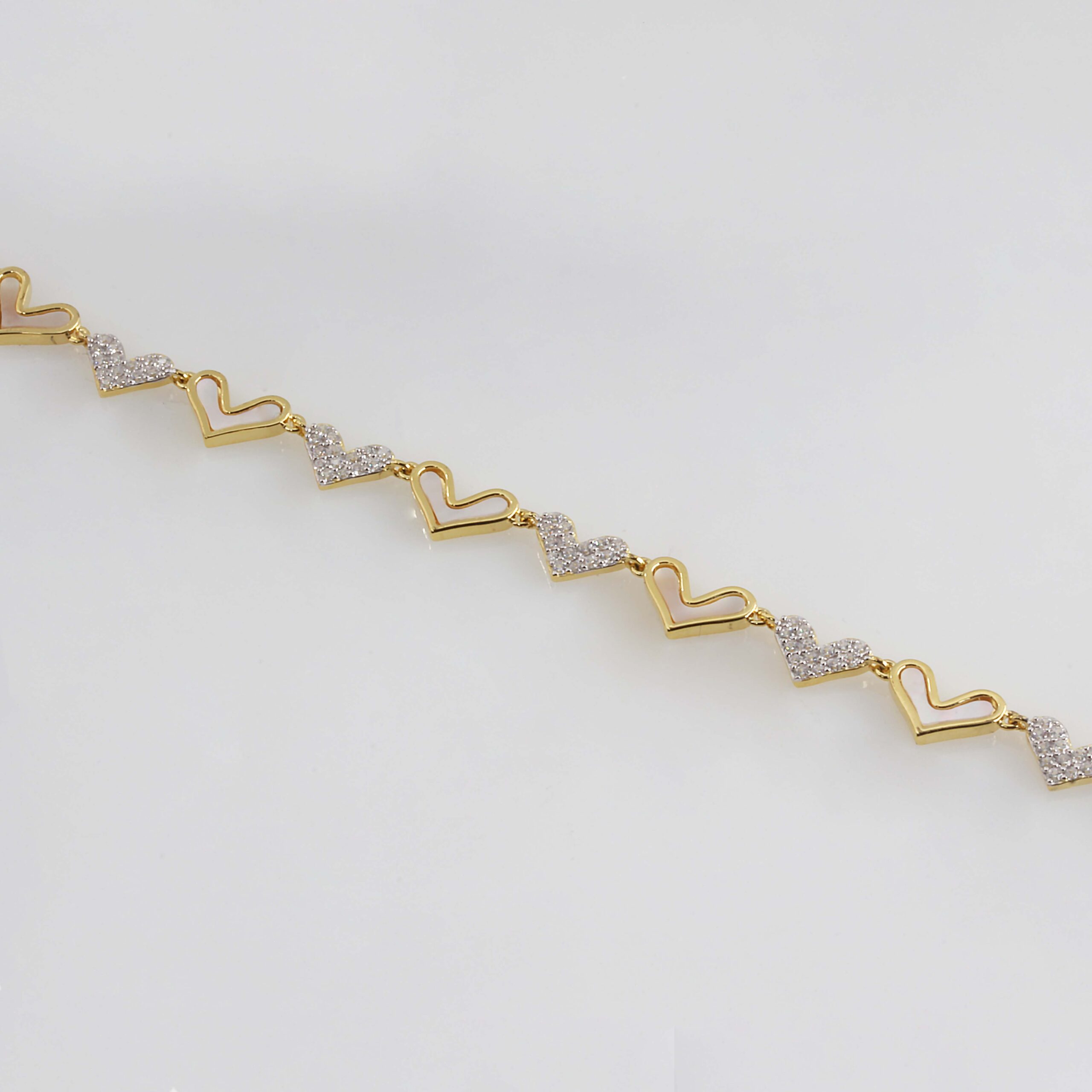 Gold Plated Heart Bracelet w/ Cubic Zirconia & Enamel #610-00079