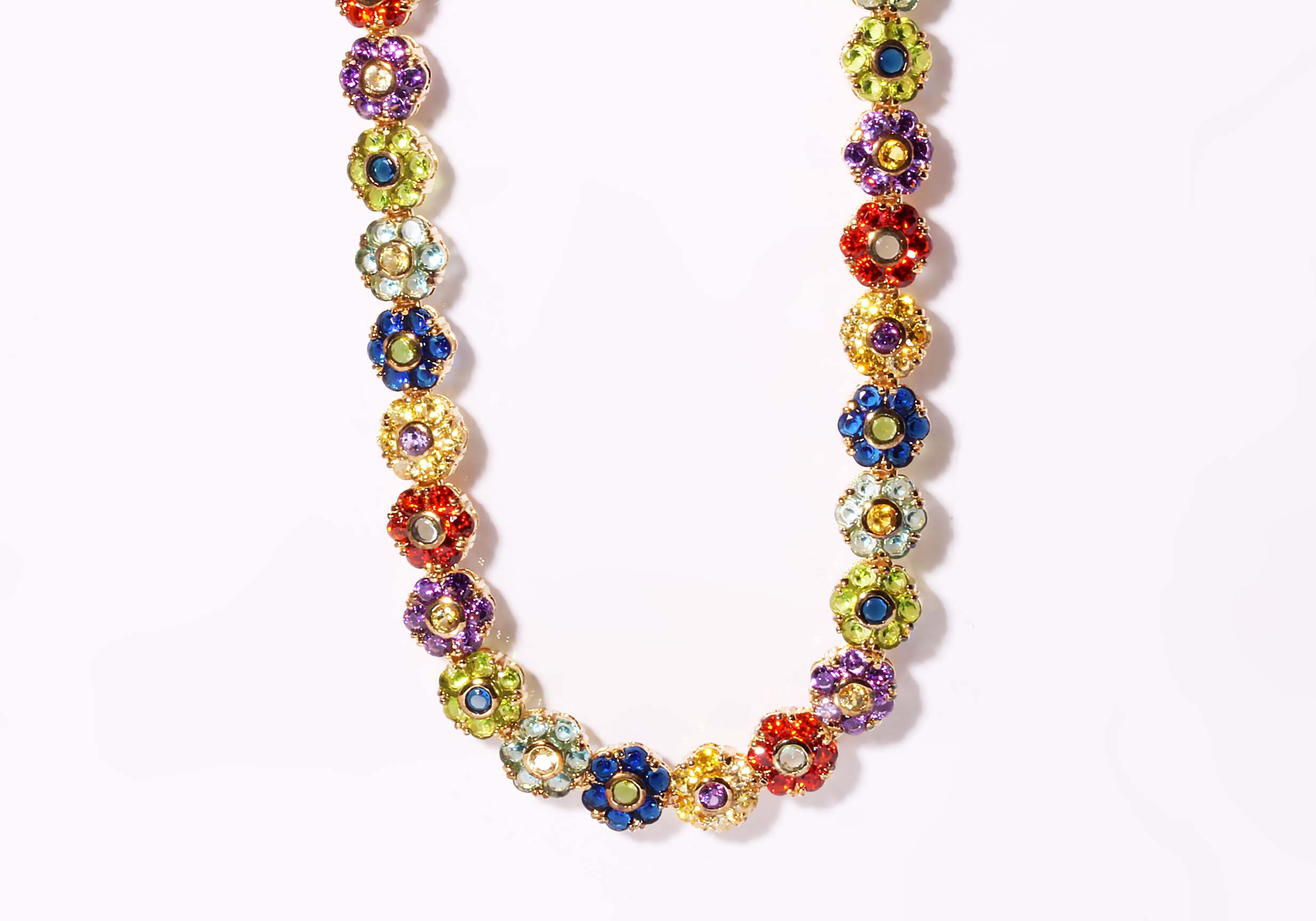 Gold Plated Sterling Silver Multi Colored Flower Fashion Necklace