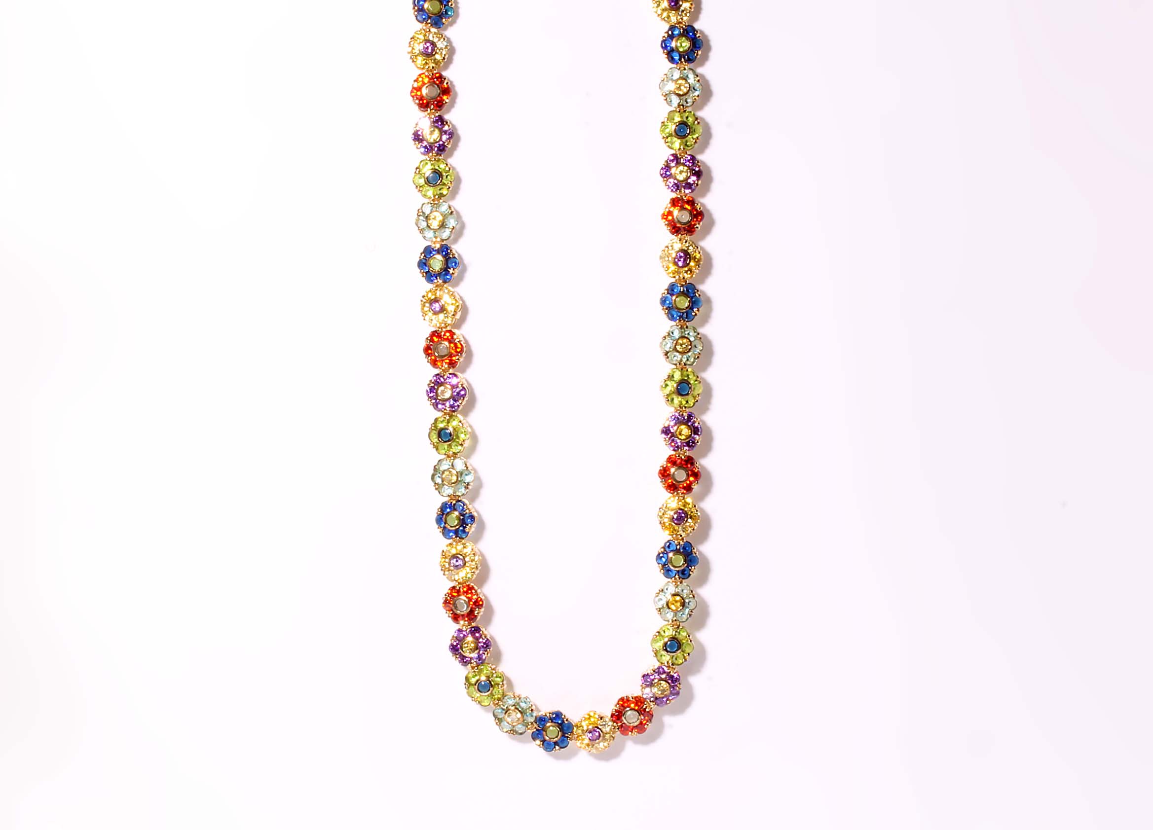 Gold Plated Sterling Silver Multi Colored Flower Fashion Necklace -Stock# 8279