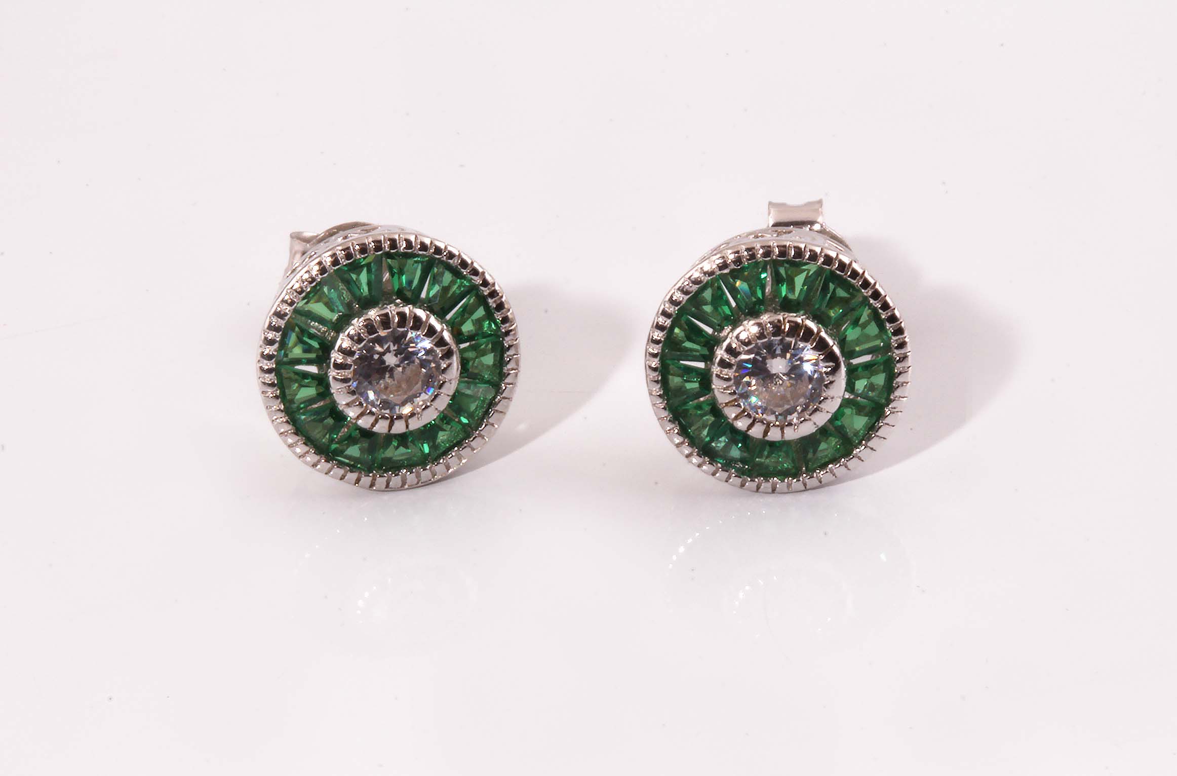 Green & White Cubic Zirconium Baguette Disc 10 MM Diameter #645-00024
