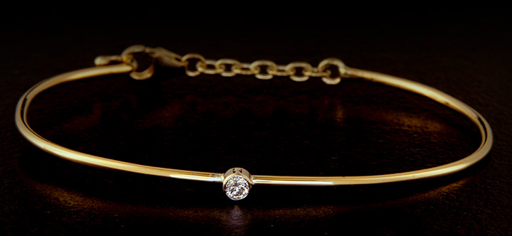 Hand Made Diamond Bangle with Bezel Diamond 0.18ctw in 14K Yellow Gold Stock# 8978