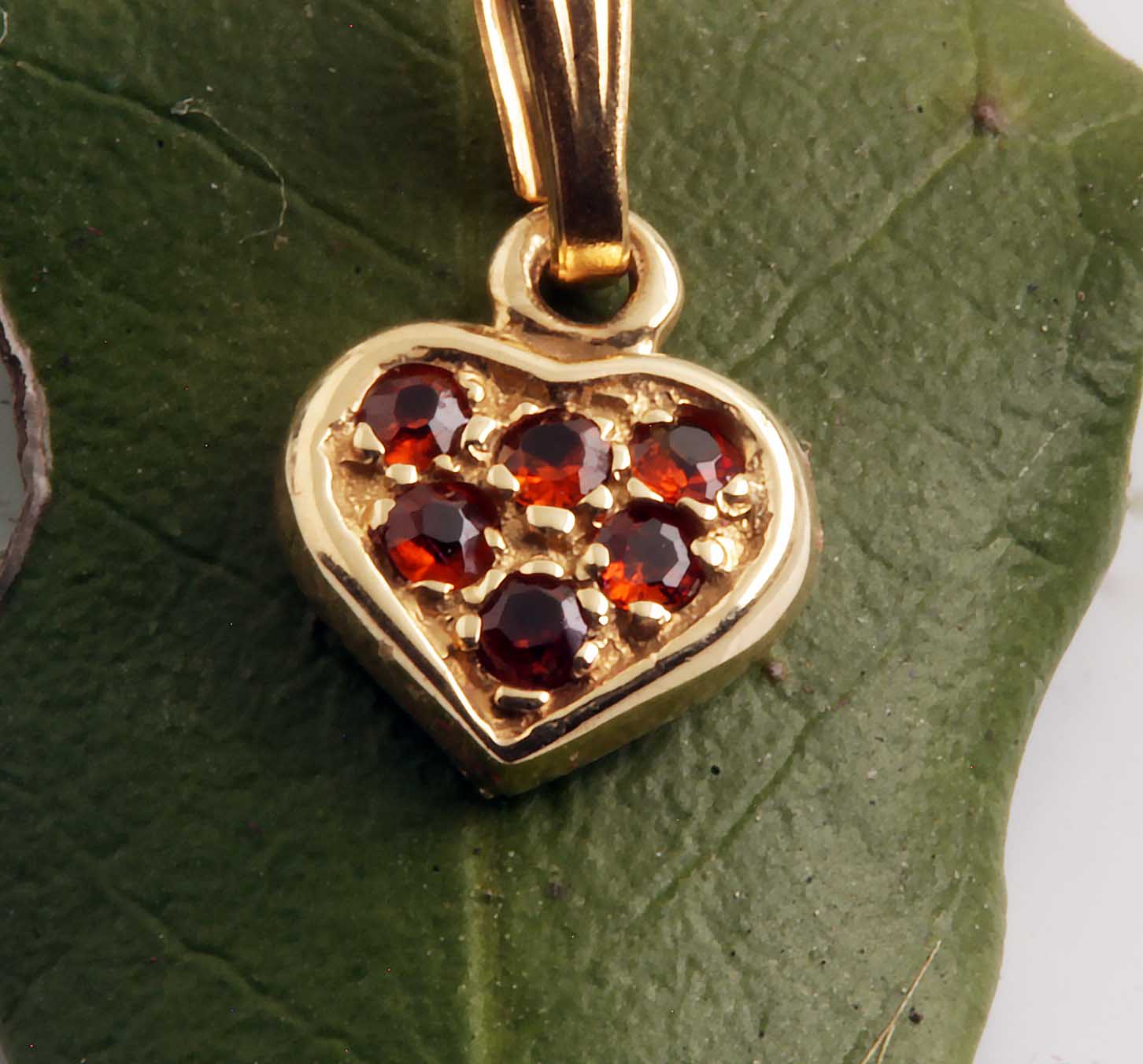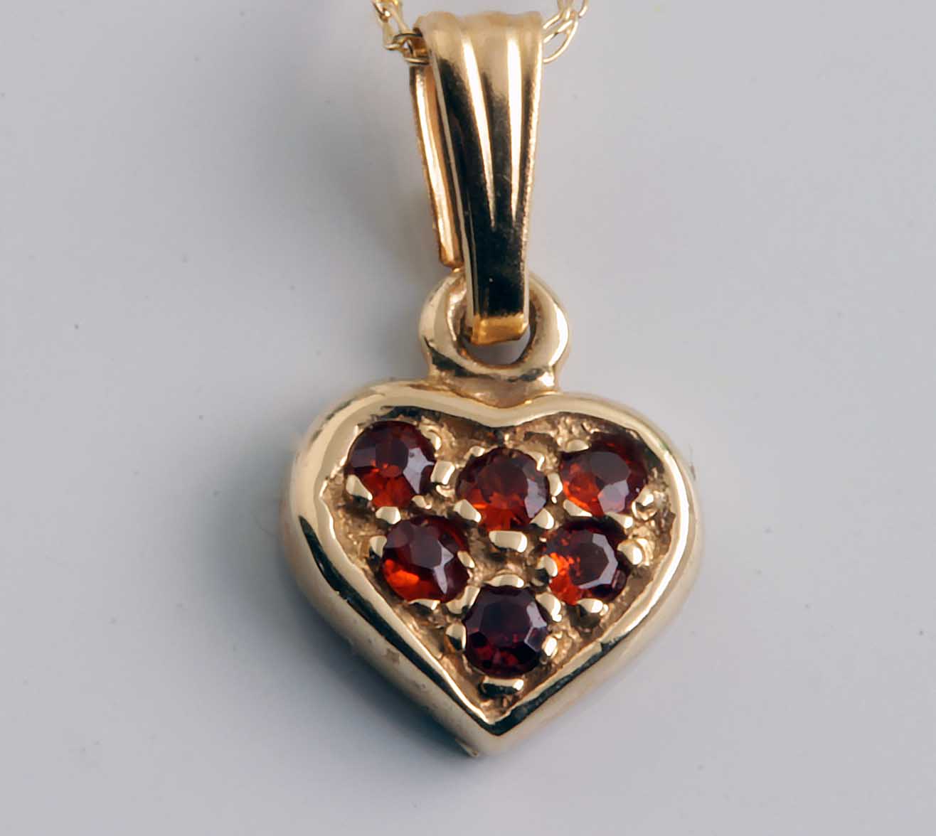 Heart Garnet Petite Pendant YG #230-00068 18″ Rope Chain