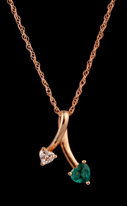 Heart Shaped Diamond 0.12 ctw and Emerald 0.25 ctw Pendant in 14K Yellow Gold – Stock# 8294