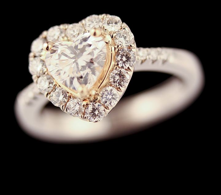 Heart Shaped Diamond Engagement Ring in 18K Two Tone Gold – Stock# 8558