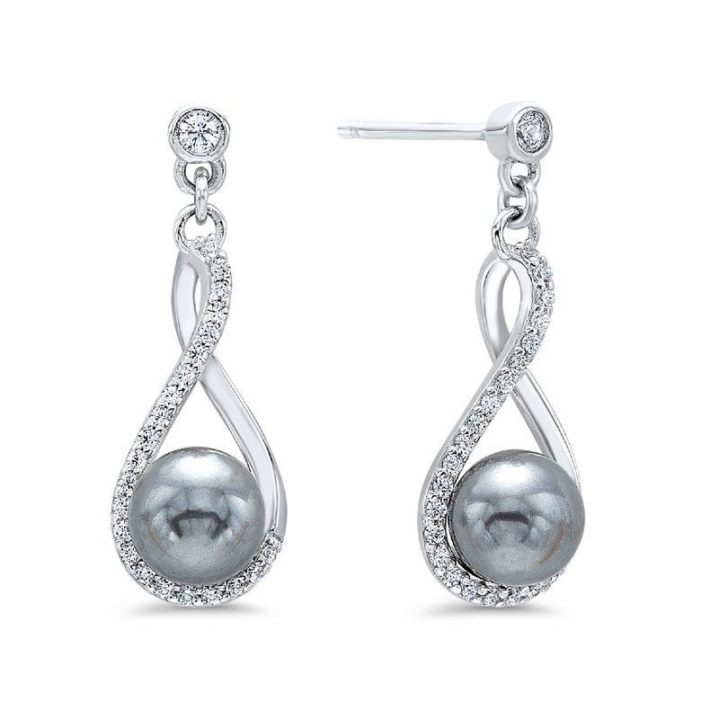 Infinity Black Dyed Pearl CZ Dangle Earrings 10140