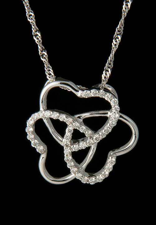 Interlocking Diamond .022 ctw Hearts Necklace in 14K White Gold – Stock# 8217