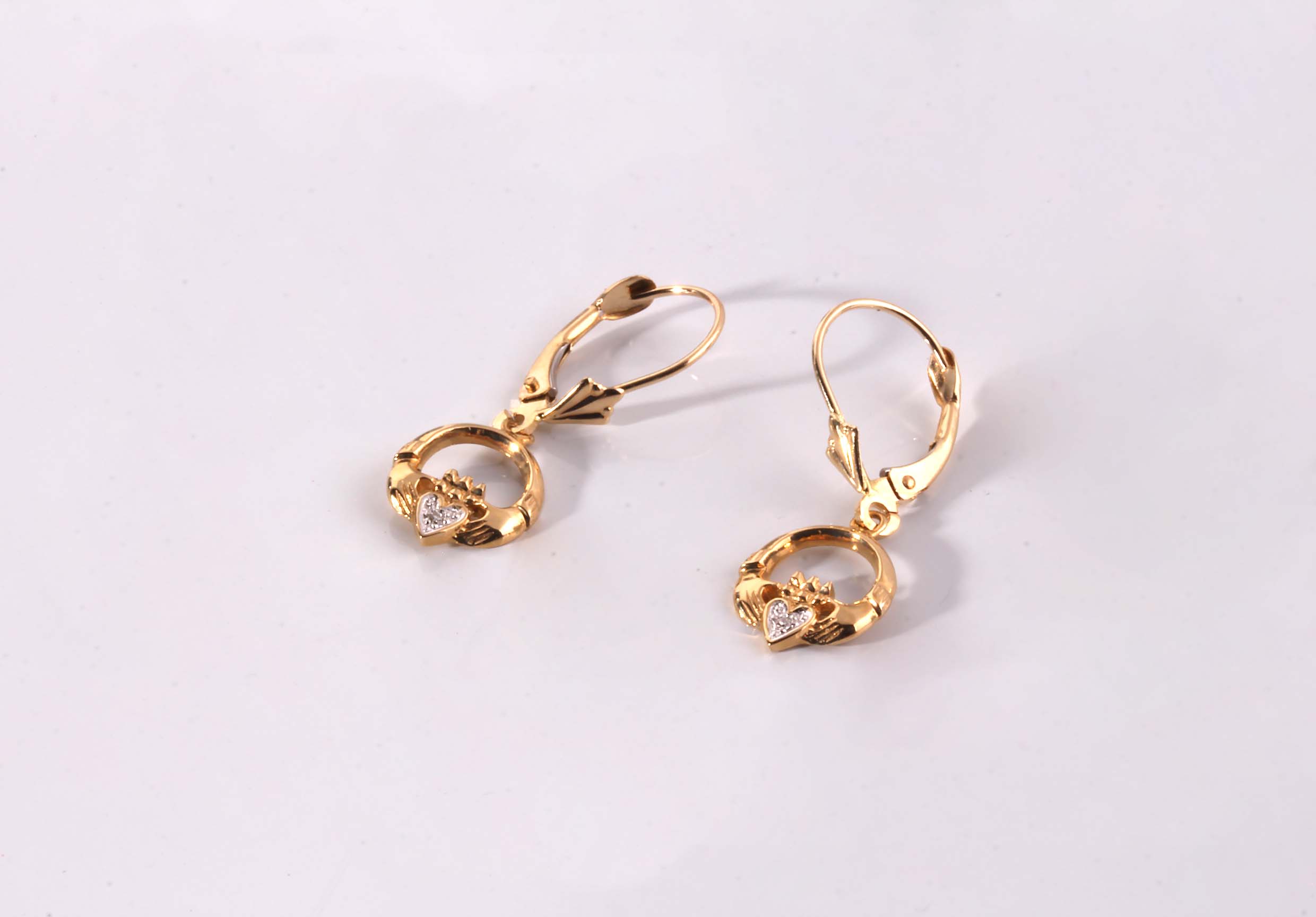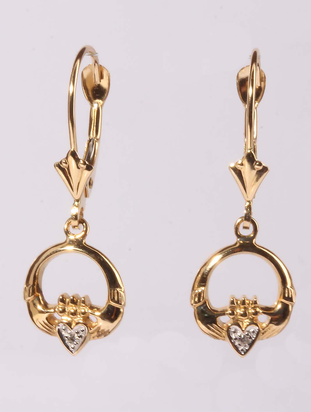 Irish Claddagh Dangle FleurDiLis Levers in 14KYG 10274