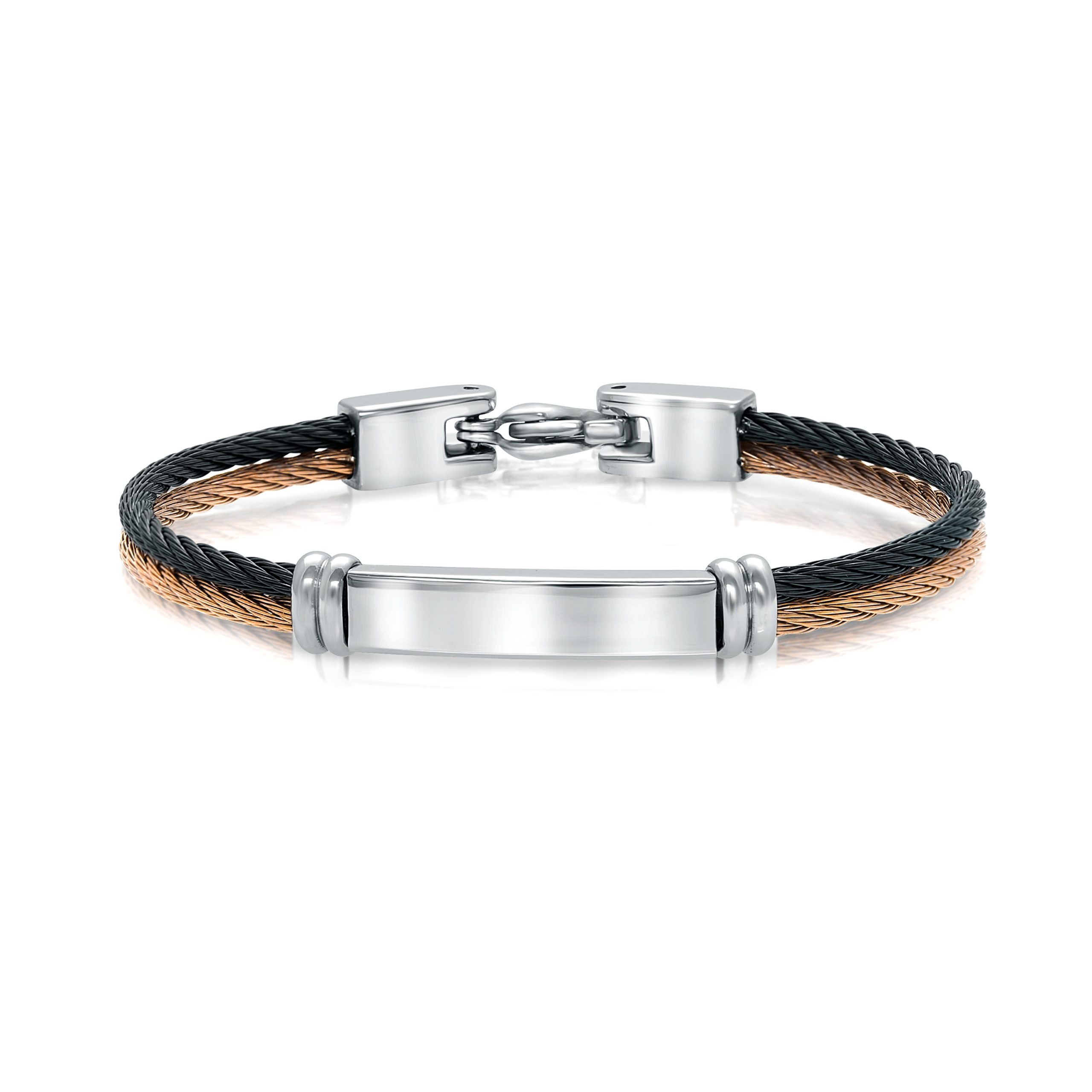 Kid’s Stainless Steel Black & Rose IP Plated Double Row Cable Bangle Bracelet w/ ID Plate – #10490