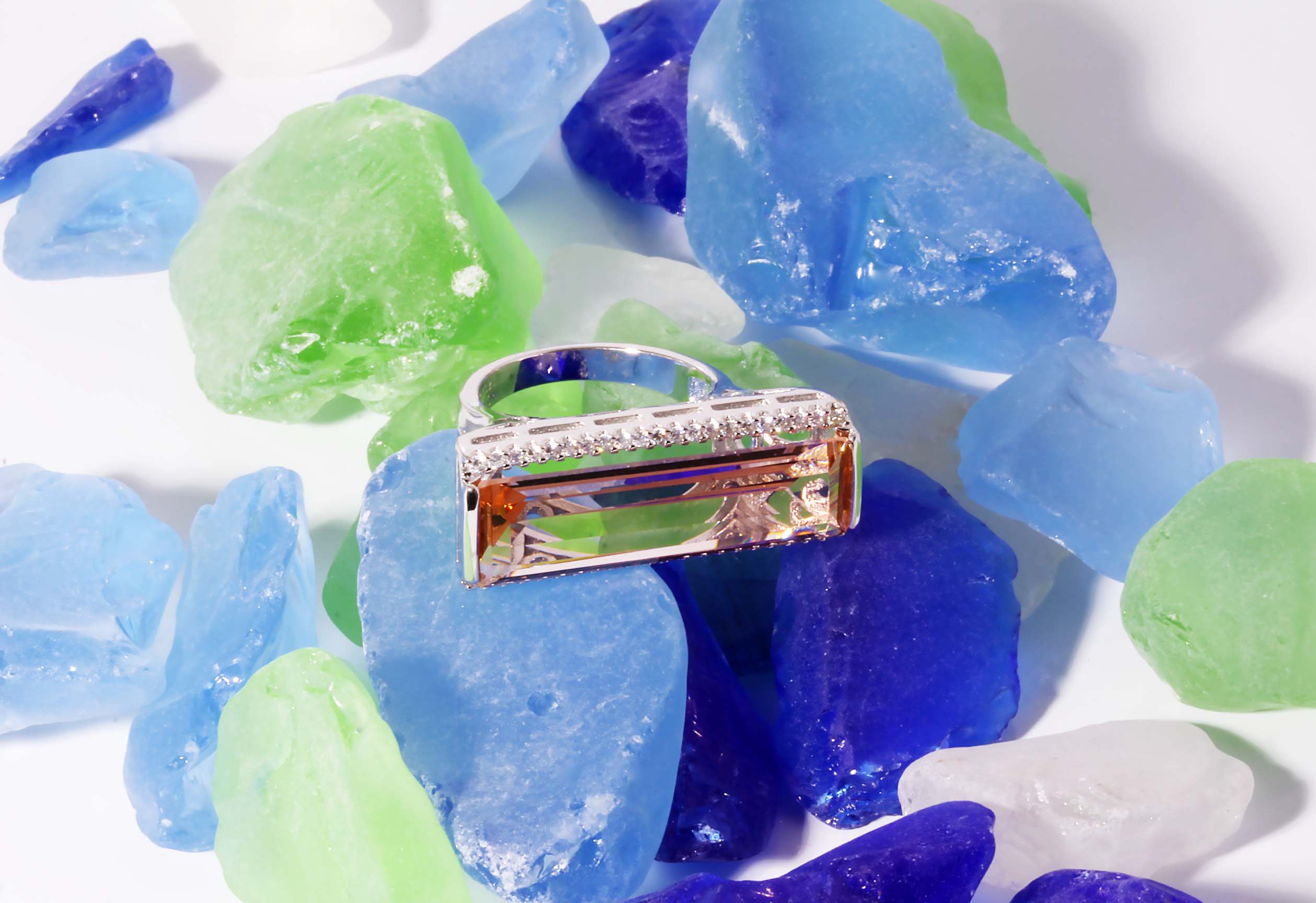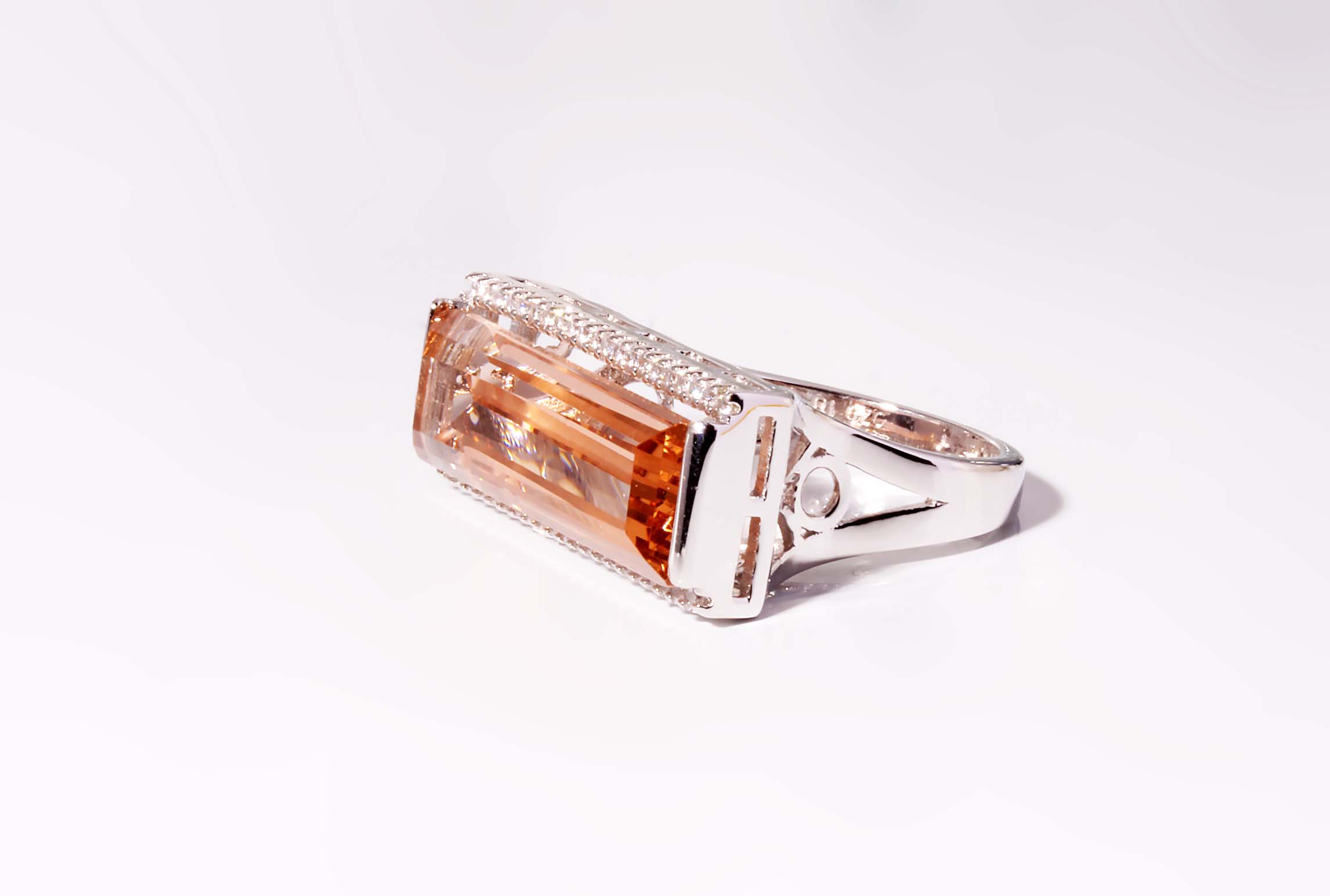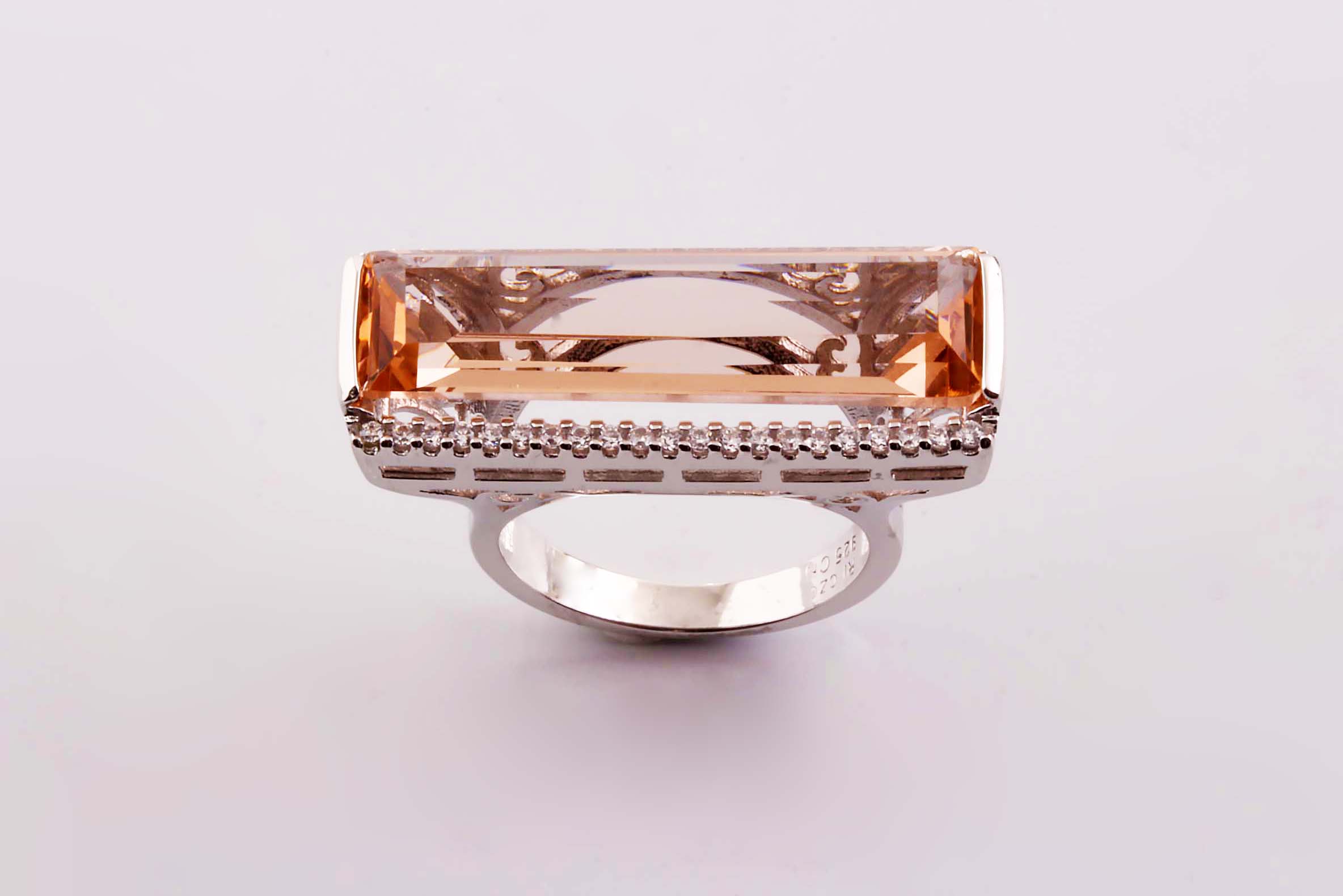 Large Rectangular Champagne Color Cubic Zirconium Ladies Fashion Ring in Sterling Silver- Stock# 600-00050