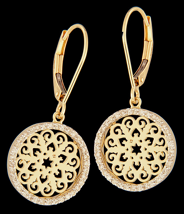 Laser Cut Plate Diamond 0.42ctw Leverback Earrings in 14K Yellow Gold Stock# 8947