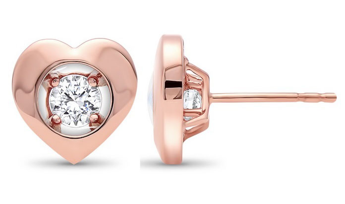 MAGNIFIRE Rose Gold Heart Framed 1/7th Carat Post Earrings 10056