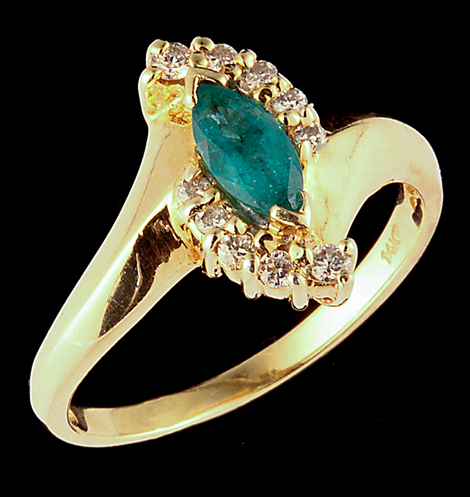 Marquis Cut Emerald Ring with (0.10ctw) Diamonds in 14K Yellow Gold – Stock# 9505