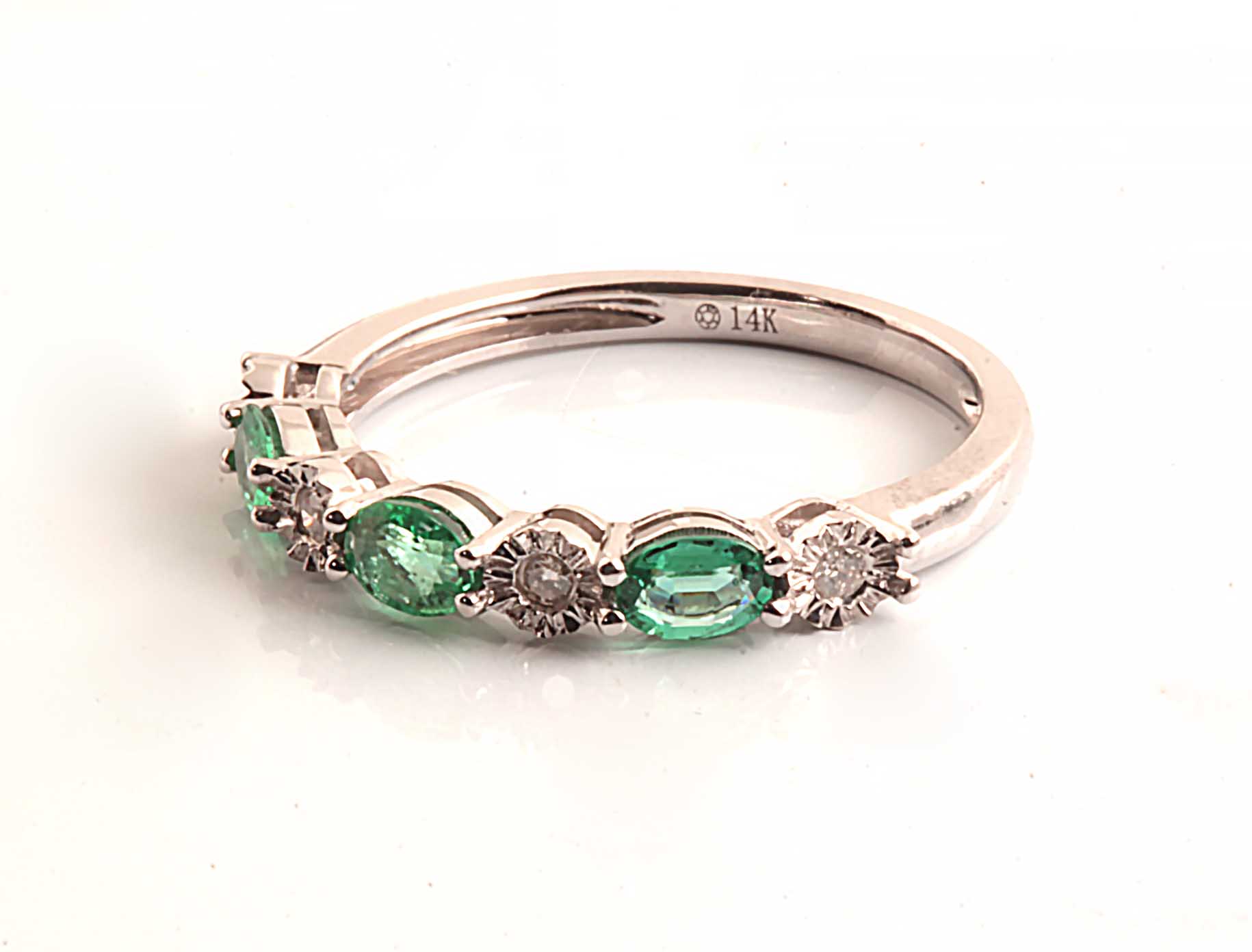 Marquise Cut Emerald and Diamond Ring in 14KWG #11593