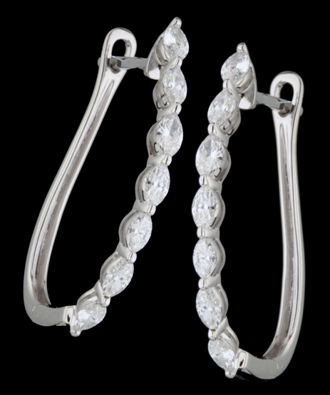Marquise Diamond Hoop Earrings – Stock# 9578 – 0.84ctw in 18K White Gold
