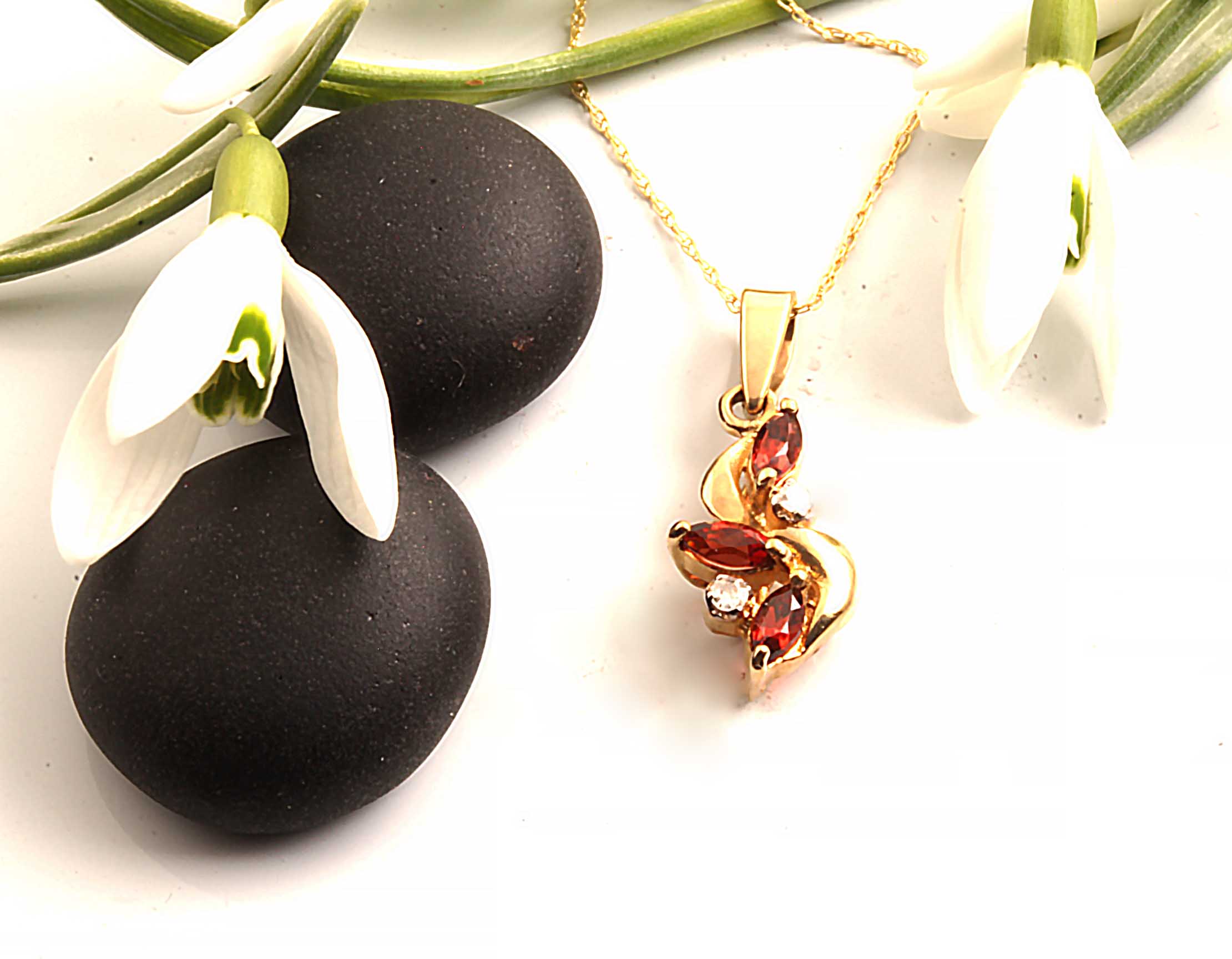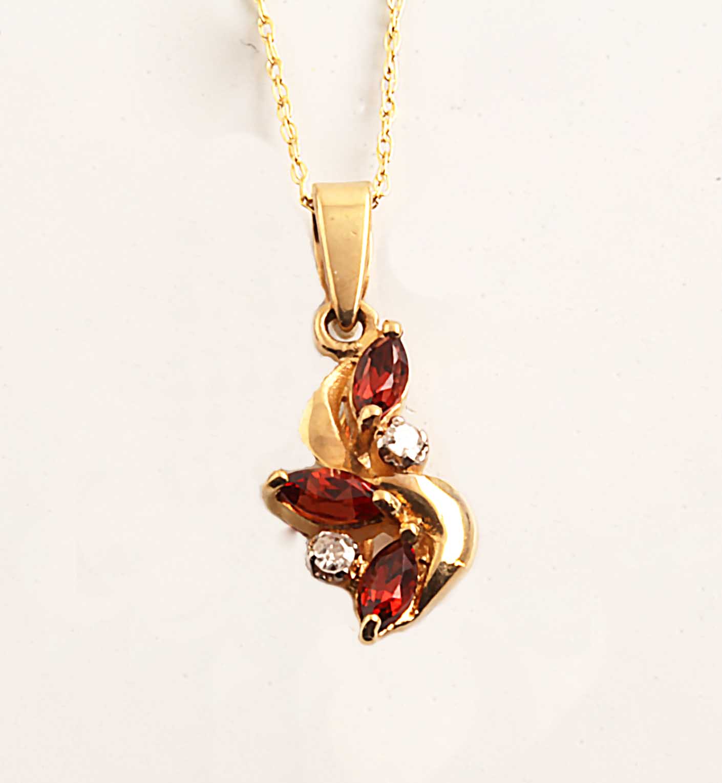 Marquise Garnet & Diamond Free Form Pendant in 14KYG
