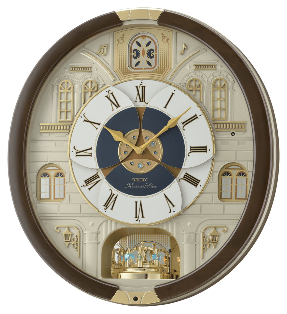 On the hour, the clock plays one of 18 of the finest quality sound melodies or chime. Two sets of melodies are available for selection on the control panel: