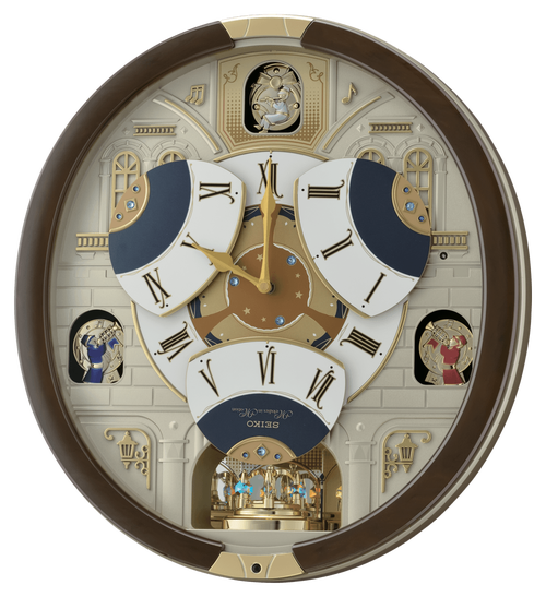 Seiko’s Melodies in Motion Clocks are enchanting and magical. This clock brings the sight of a beautiful castle in the distance to life. On the hour, the glittery pendulum swings and plays one of eighteen of the finest quality sound melodies or Westminster chime plus an opening melody. It has a brown case, a demonstration button, and volume control. This clock is enclosed in glass, the pendulum features Swarovski crystals, and an off/on switch. This clock will light up your house year-round.