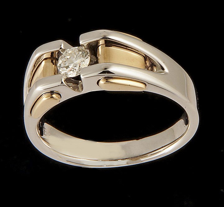 Men’s Diamond Solitaire (0.38ctw) Ring in Two Tone 14K Gold – Stock# 8509