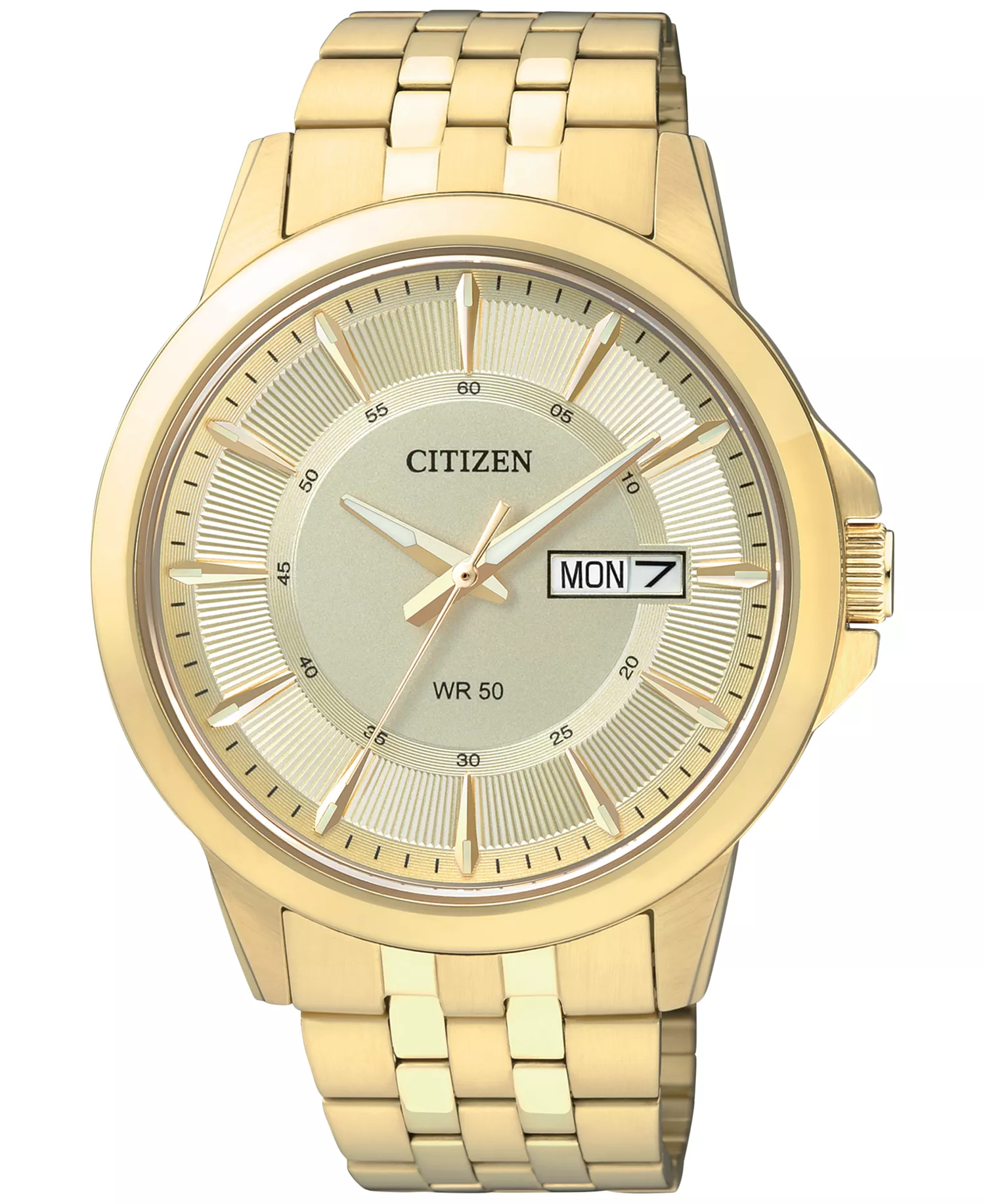 Men Yellow Tone Quartz Citizen Watch W/ Day & Date #510-00117