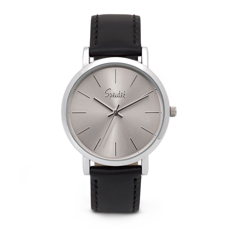 Mens Silver Dial Speidel Black Leather Strap Watch #9009