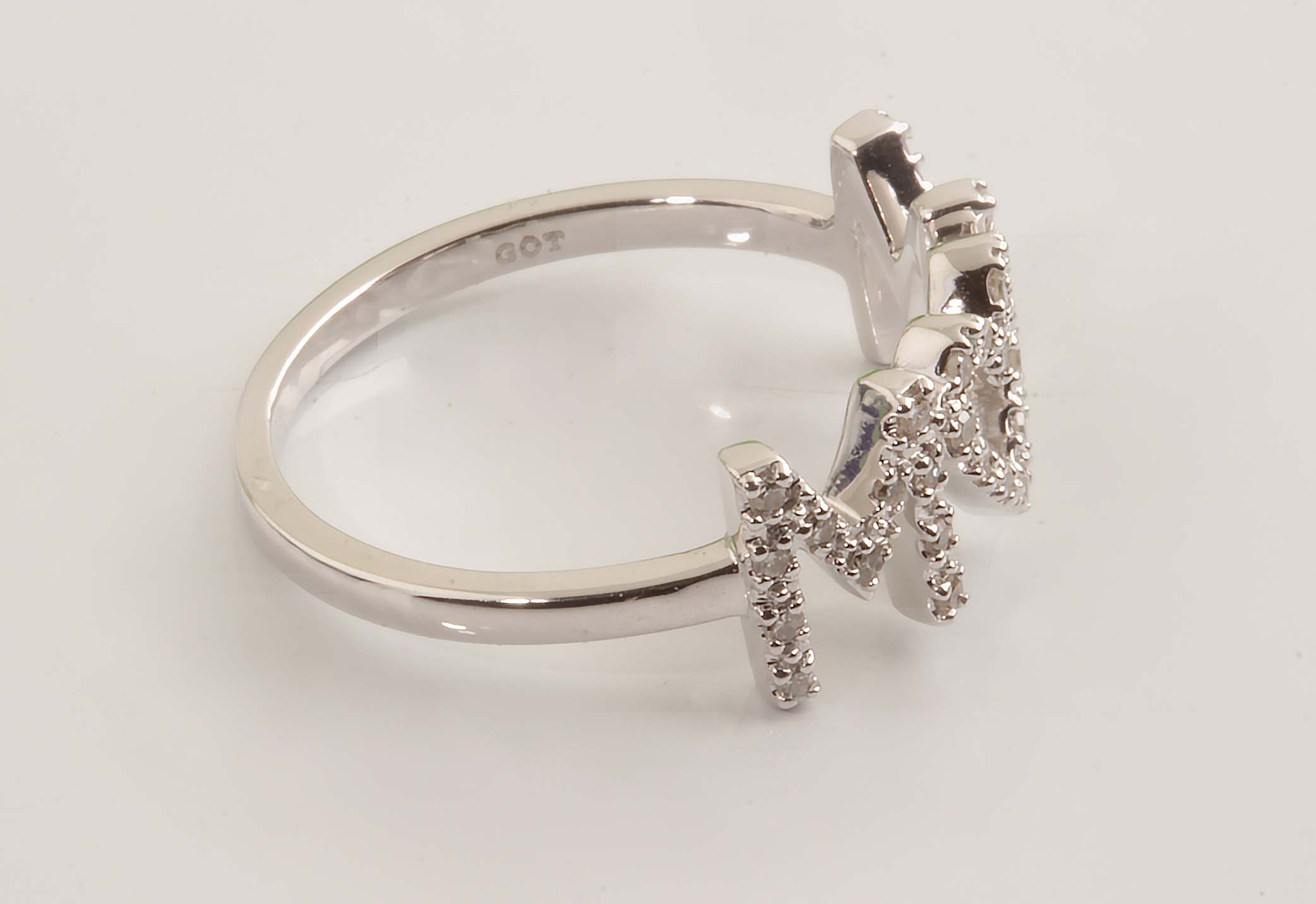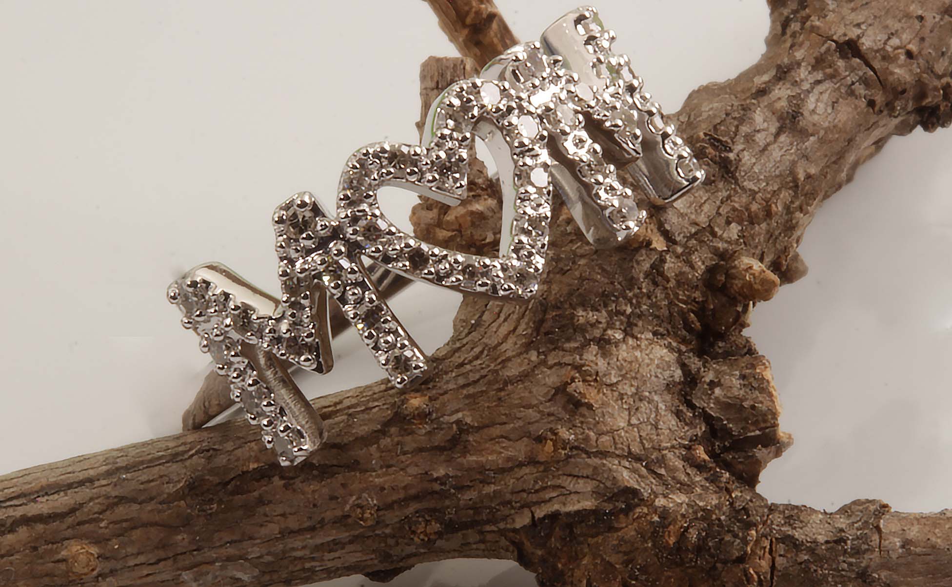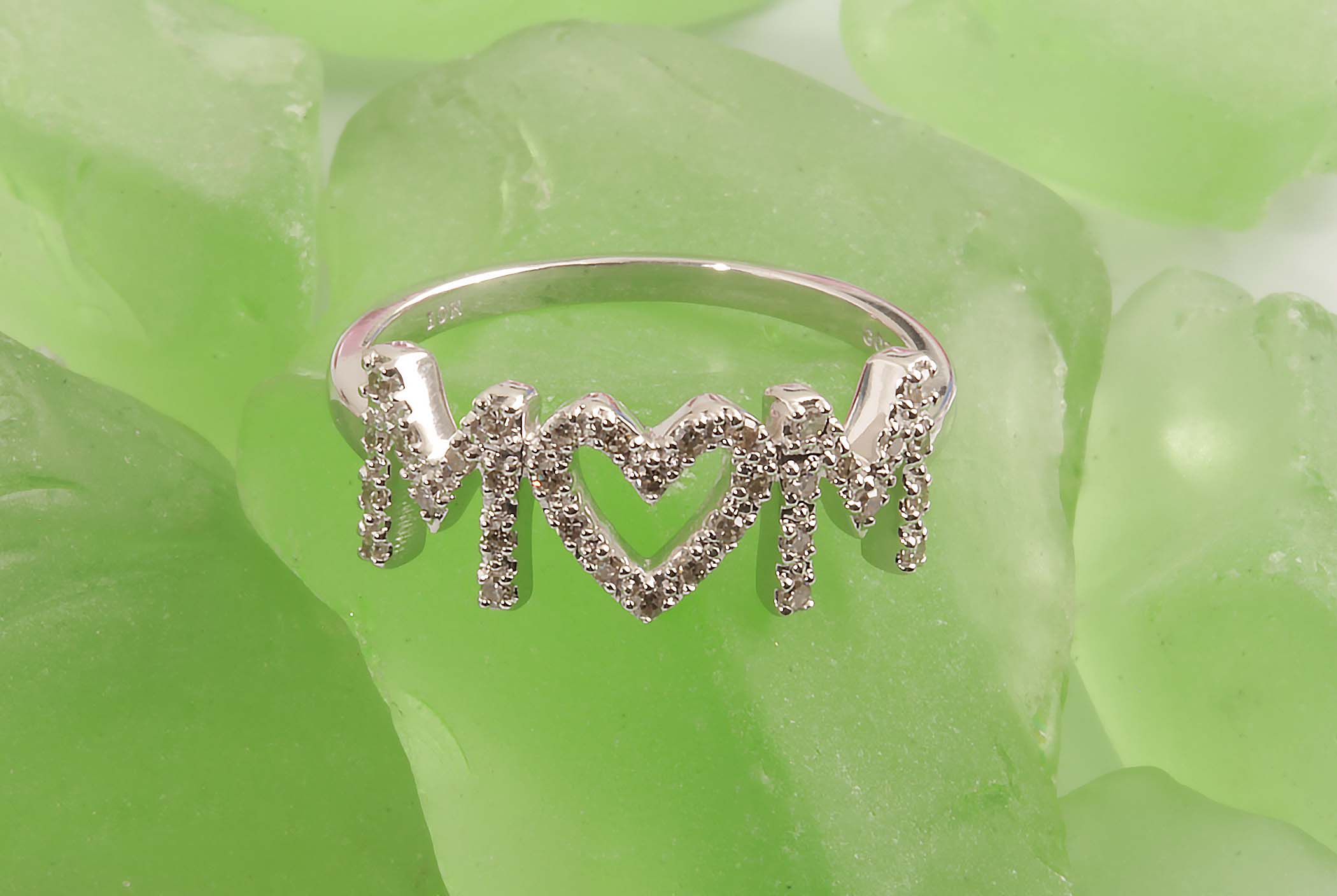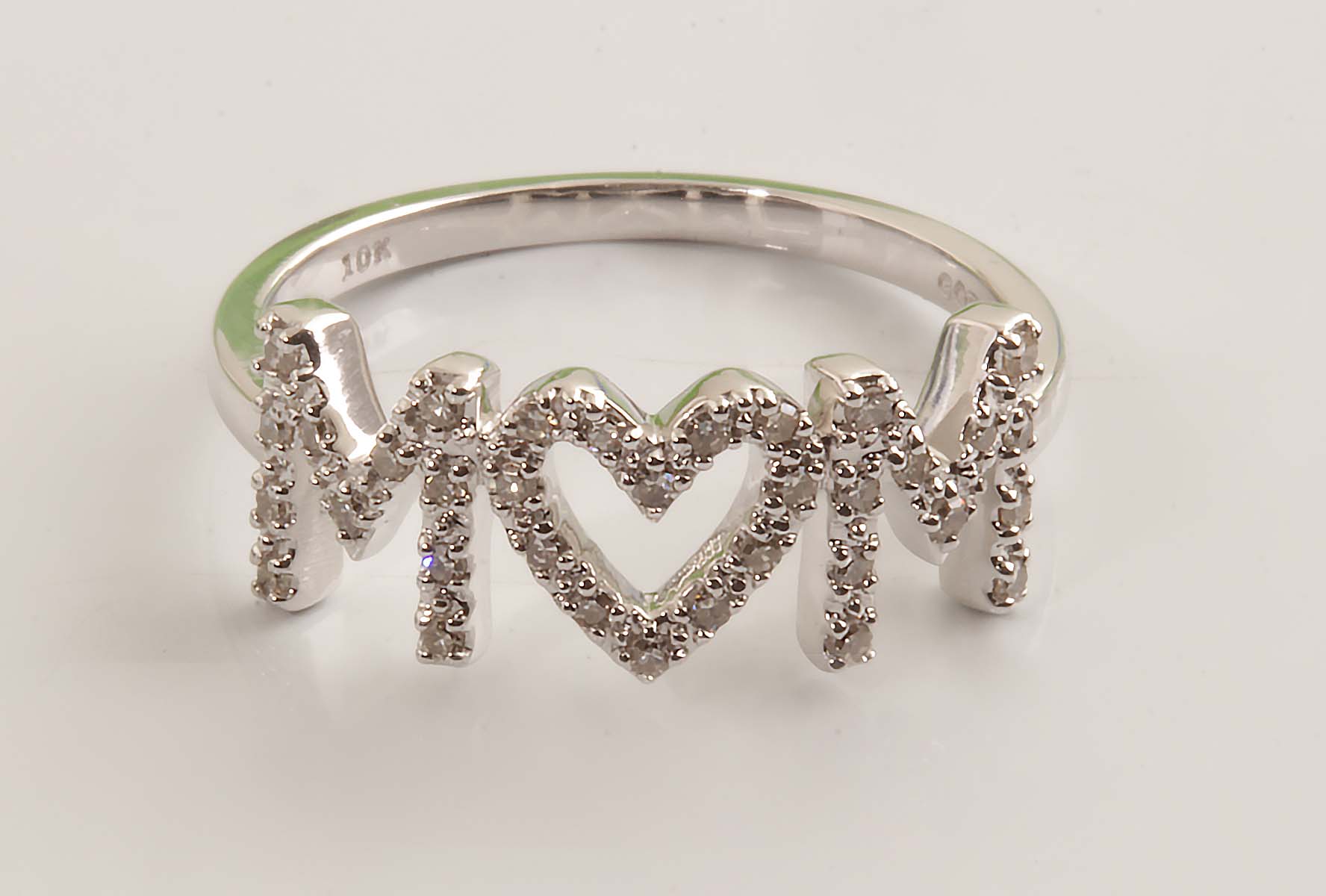 “Mom” Ring w/Diamonds 10KWG #11721 1/6TDW Heart Center