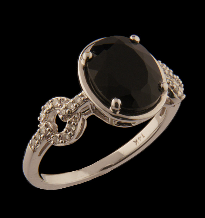Onyx and Diamond Ring in 14K White Gold – Stock# 6345