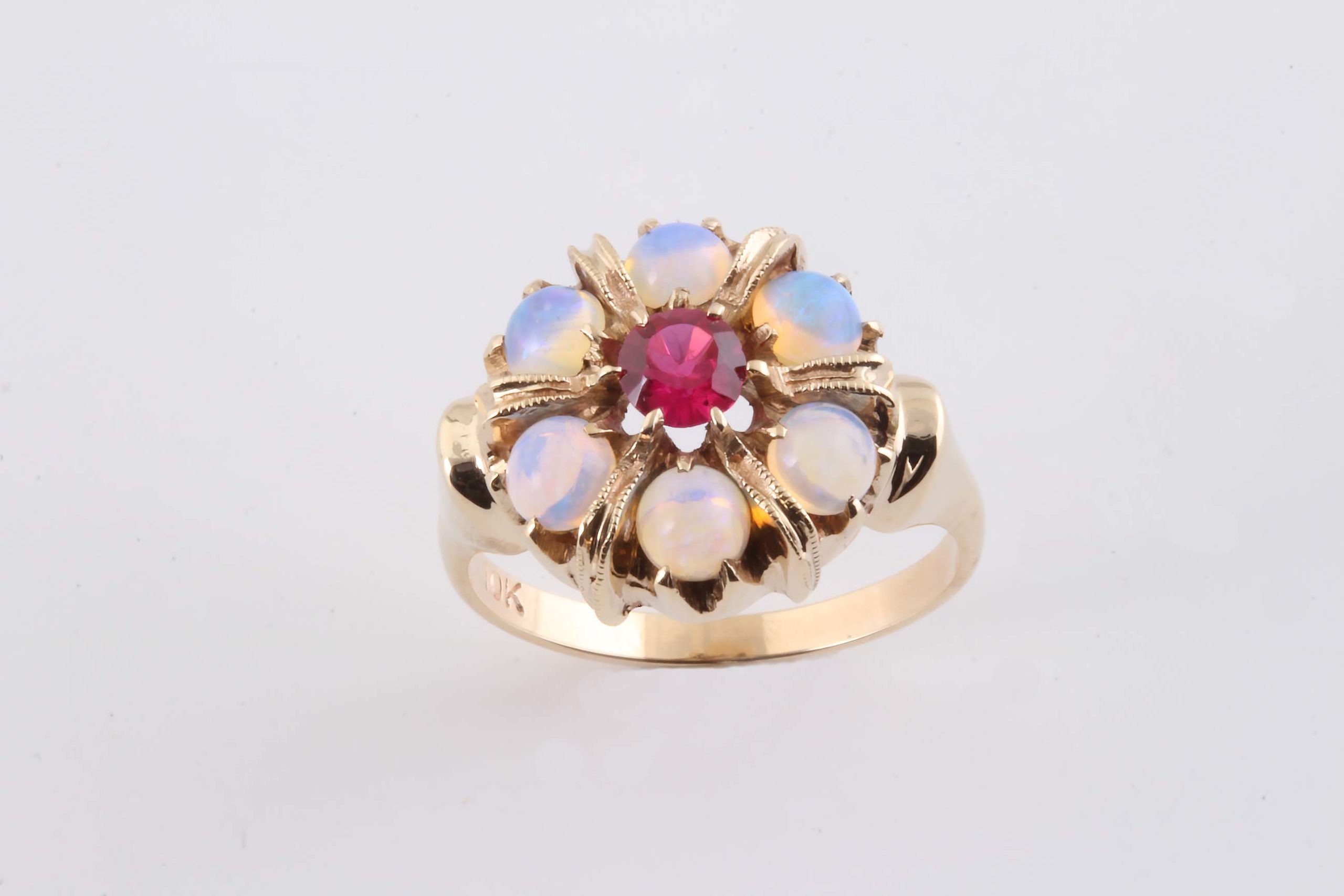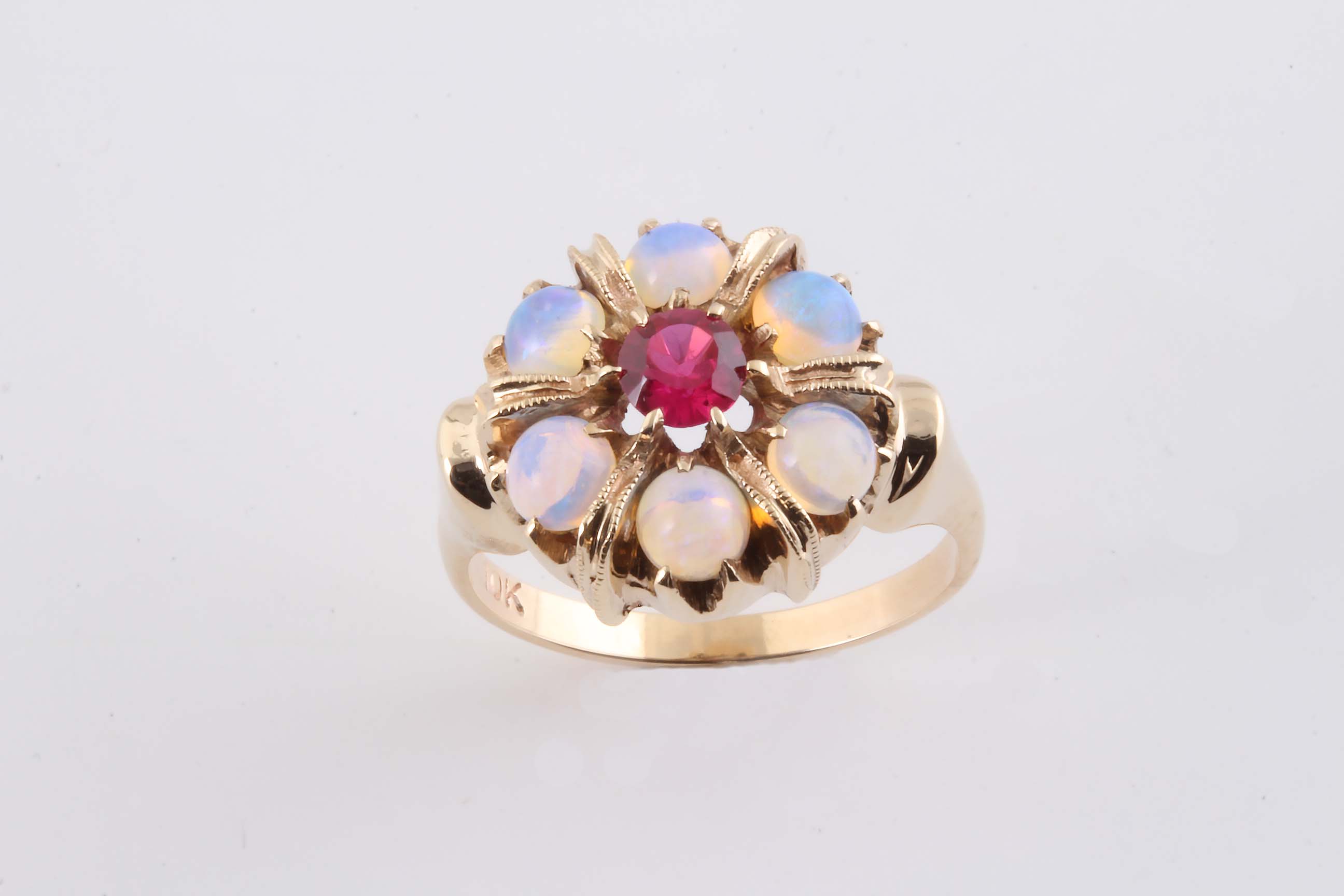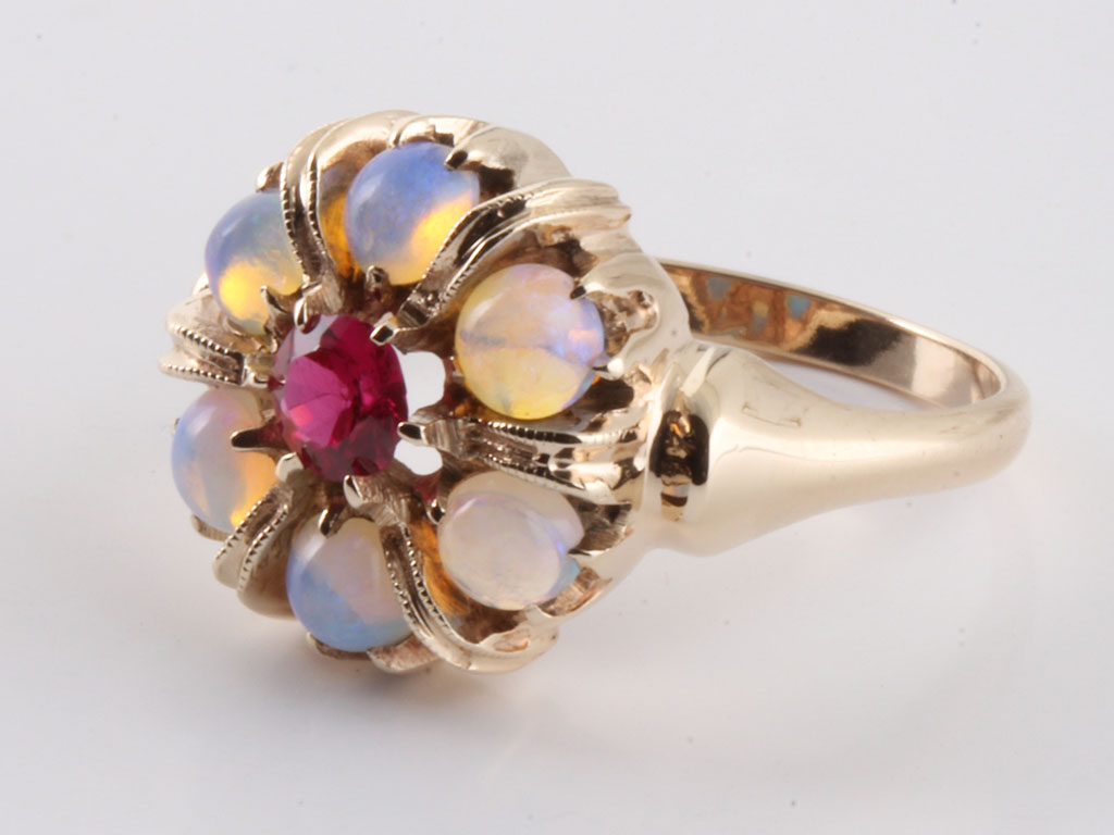 Opal & Synthetic Ruby 10 K Cluster Ladies Ring
