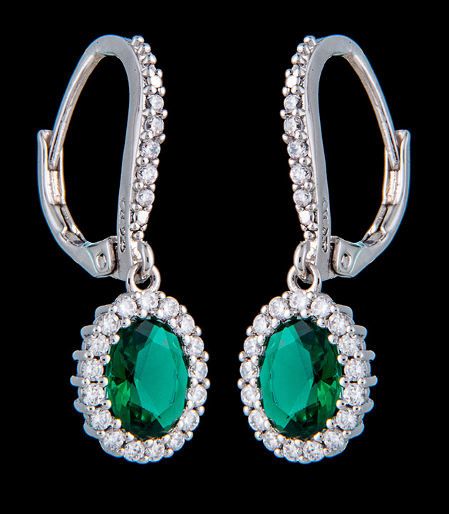 Oval Emerald Drop Earrings in Sterling Silver – Stock# 8244