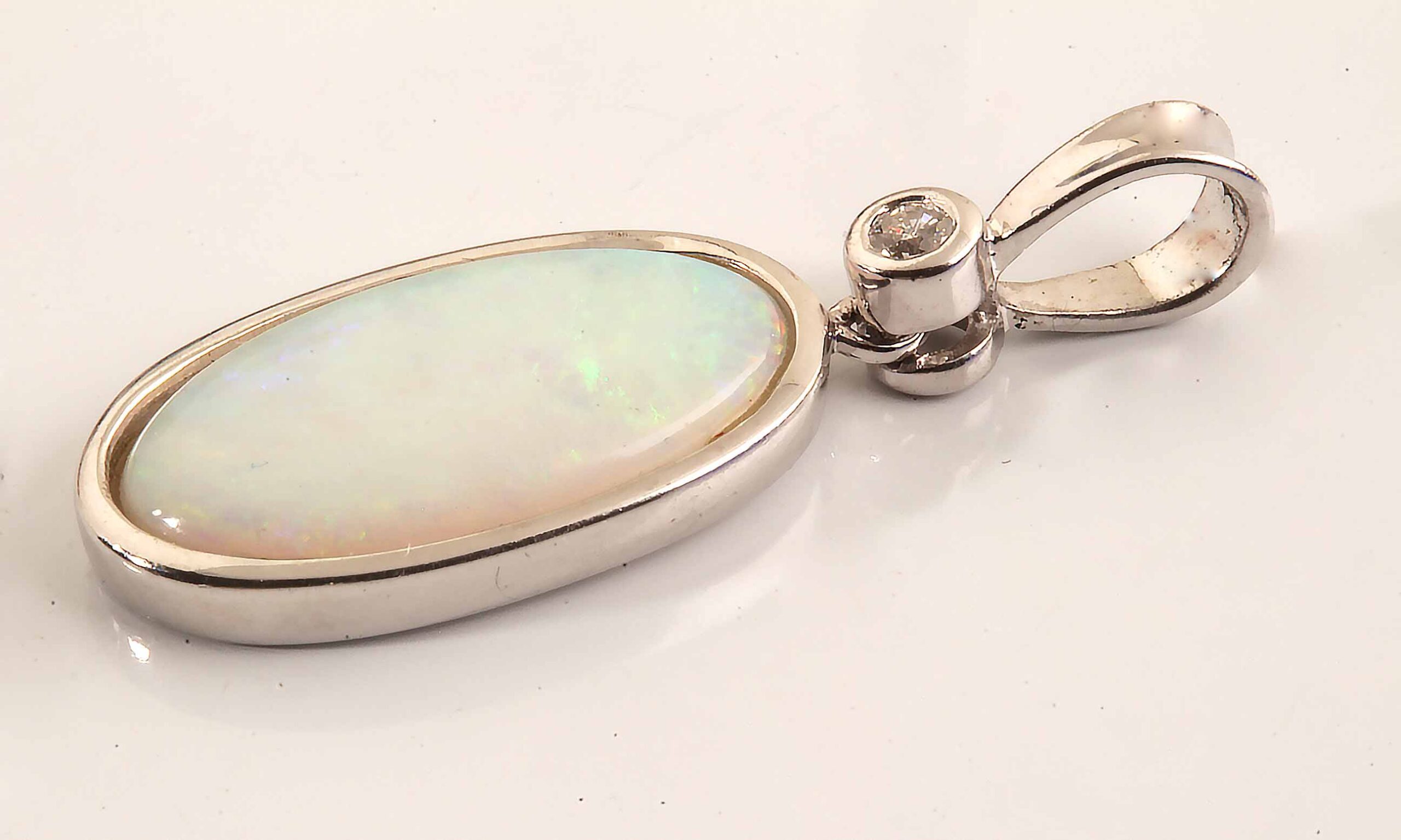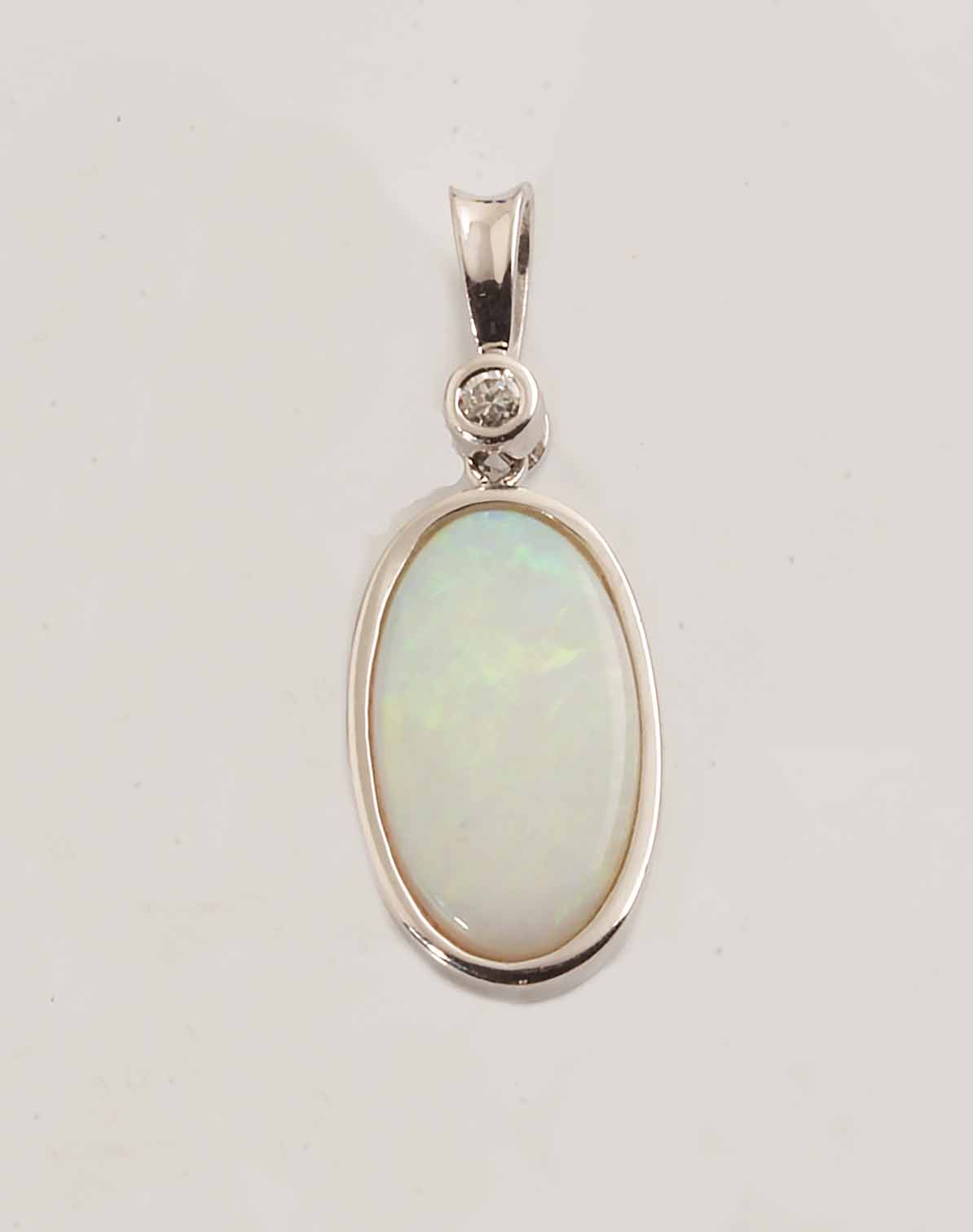 Oval Opal & Diamond 18 x 9 MM .03 ct dia 14KWG #230-00012