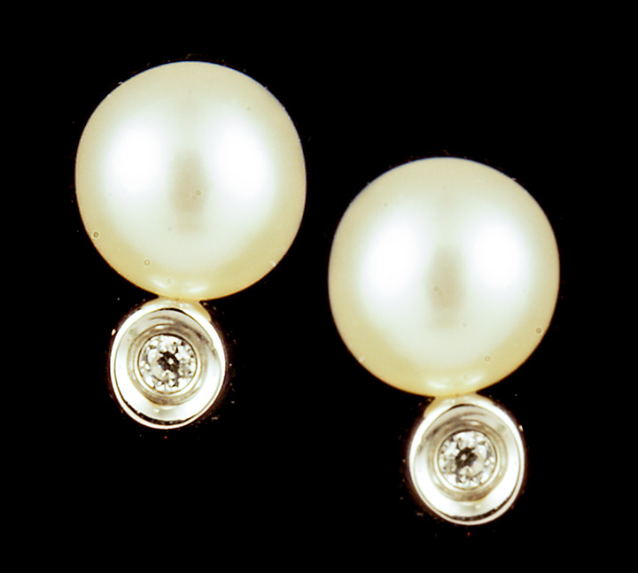 Pearl and Cubic Zirconium Post Earrings – Stock# 8727