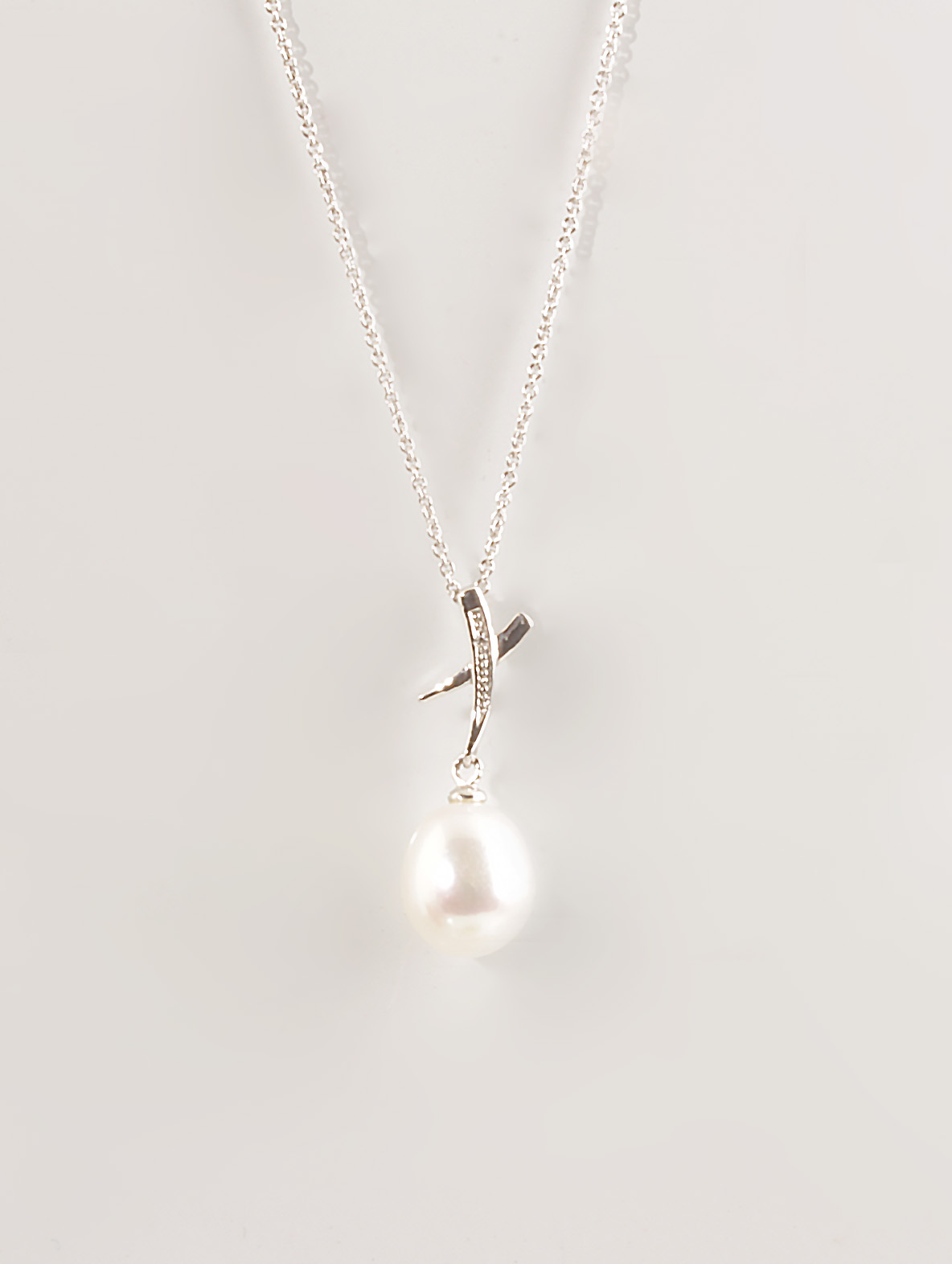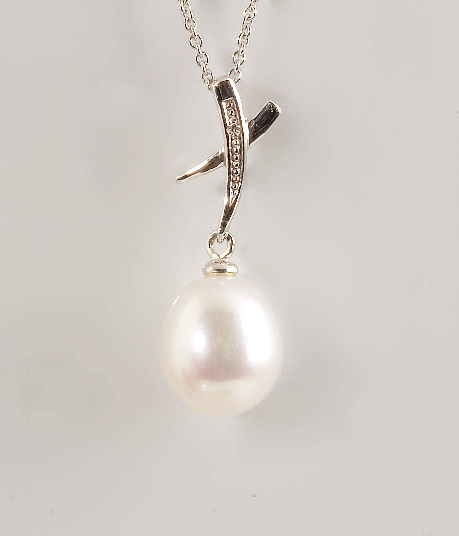 Pearl & Diamond Hug Pendant 14KWG #320-00001 , With Chain 0.01TDW