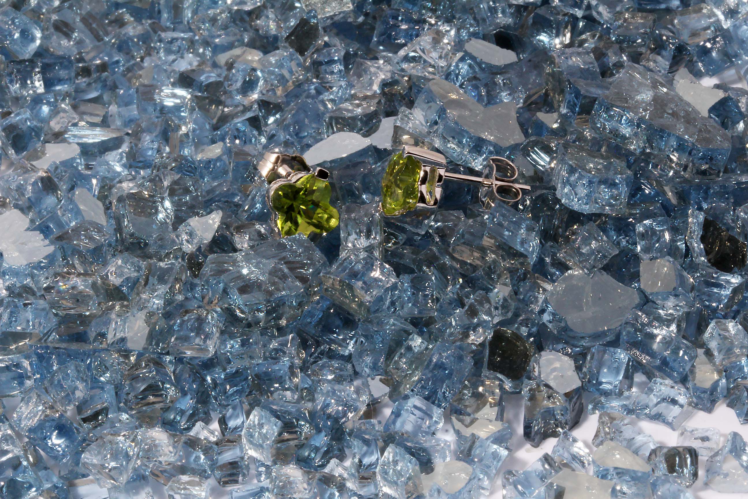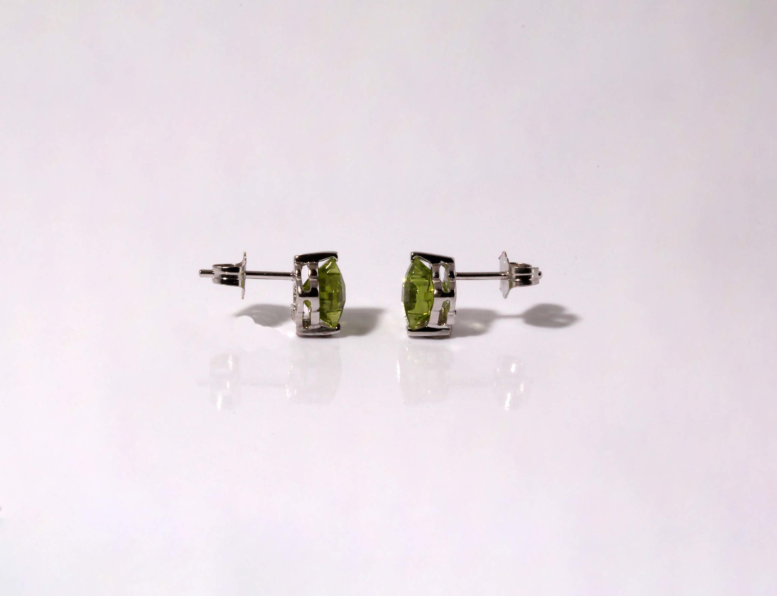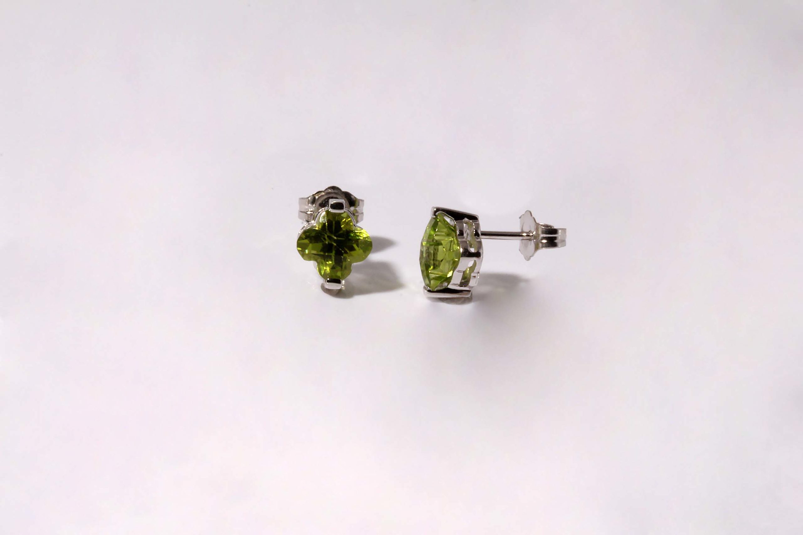 Peridot 6×6 Clover Fancy Cut WG Stud Earring Genuine Peridot -Stock# 10291