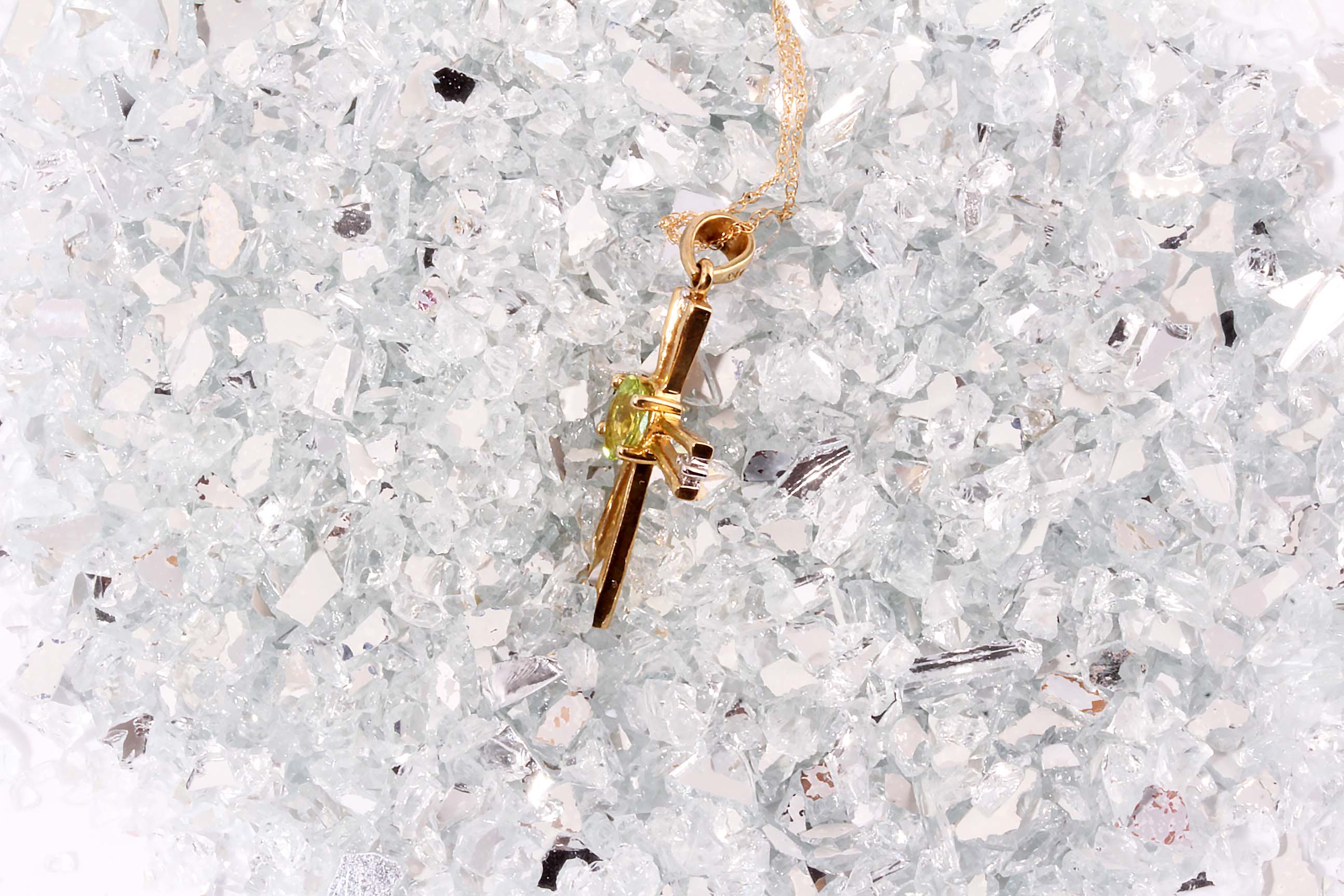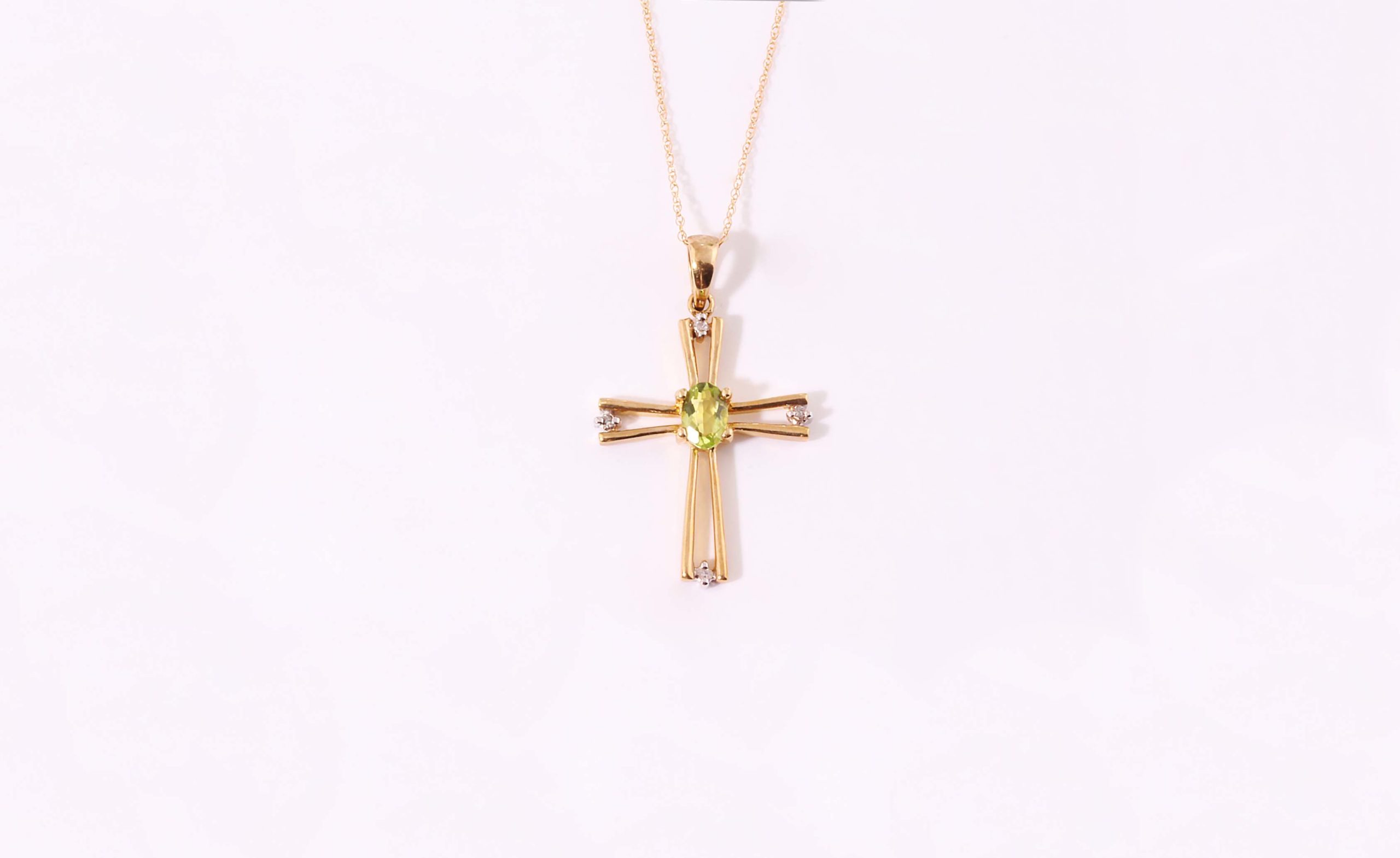 Peridot and Diamond (0.04ctw) Cross in 10K Yellow Gold – Stock# 9501