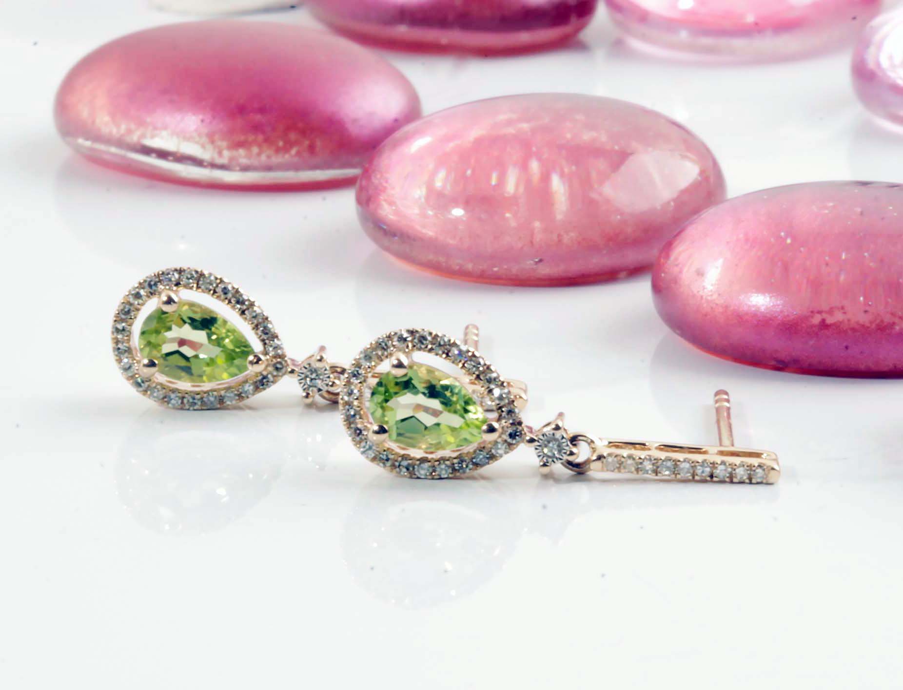 Peridot & Diamond Dangle Earrings 14KYG .20tdw #210-00064