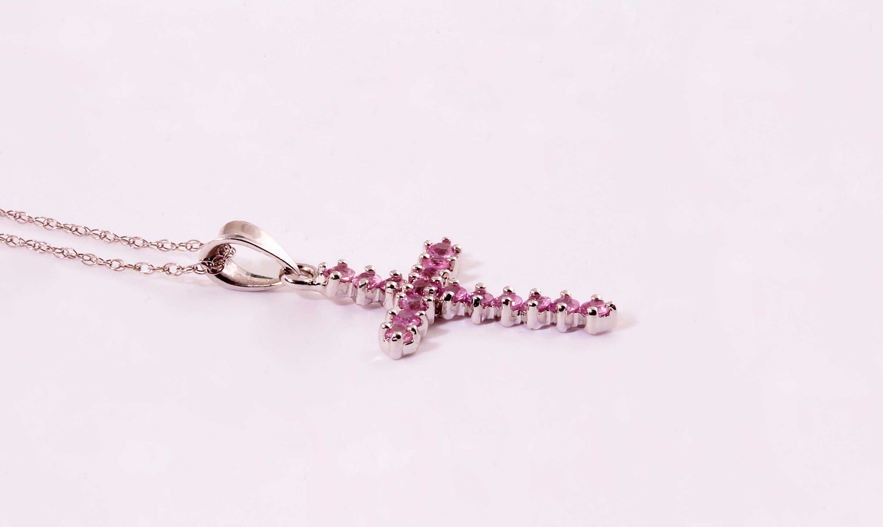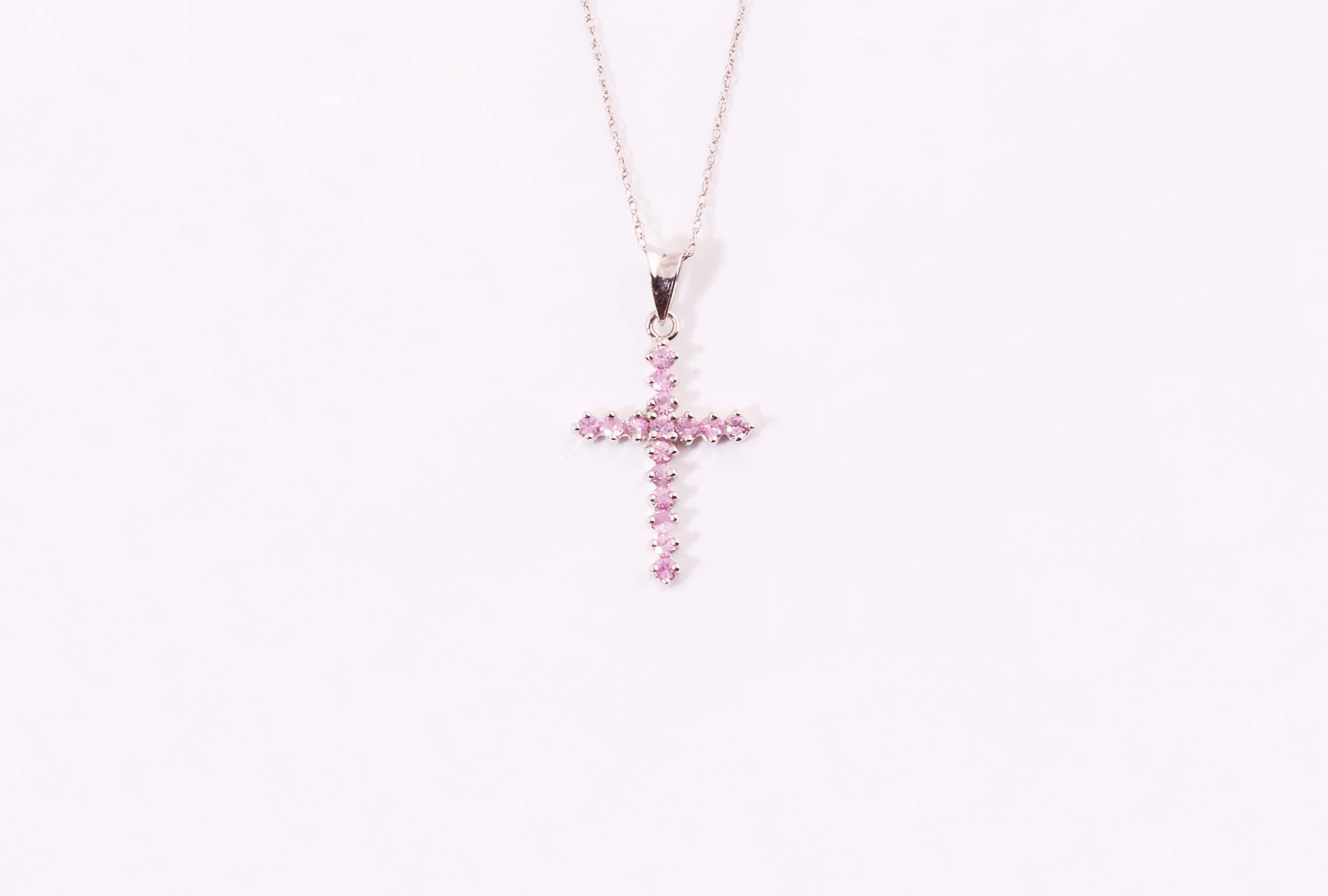 Pink Sapphire 0.50 ctw Cross Charm in 14K White Gold – Stock# 7618