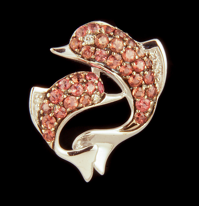 Pink Sapphire Double Dolphin Charm in 14K White Gold