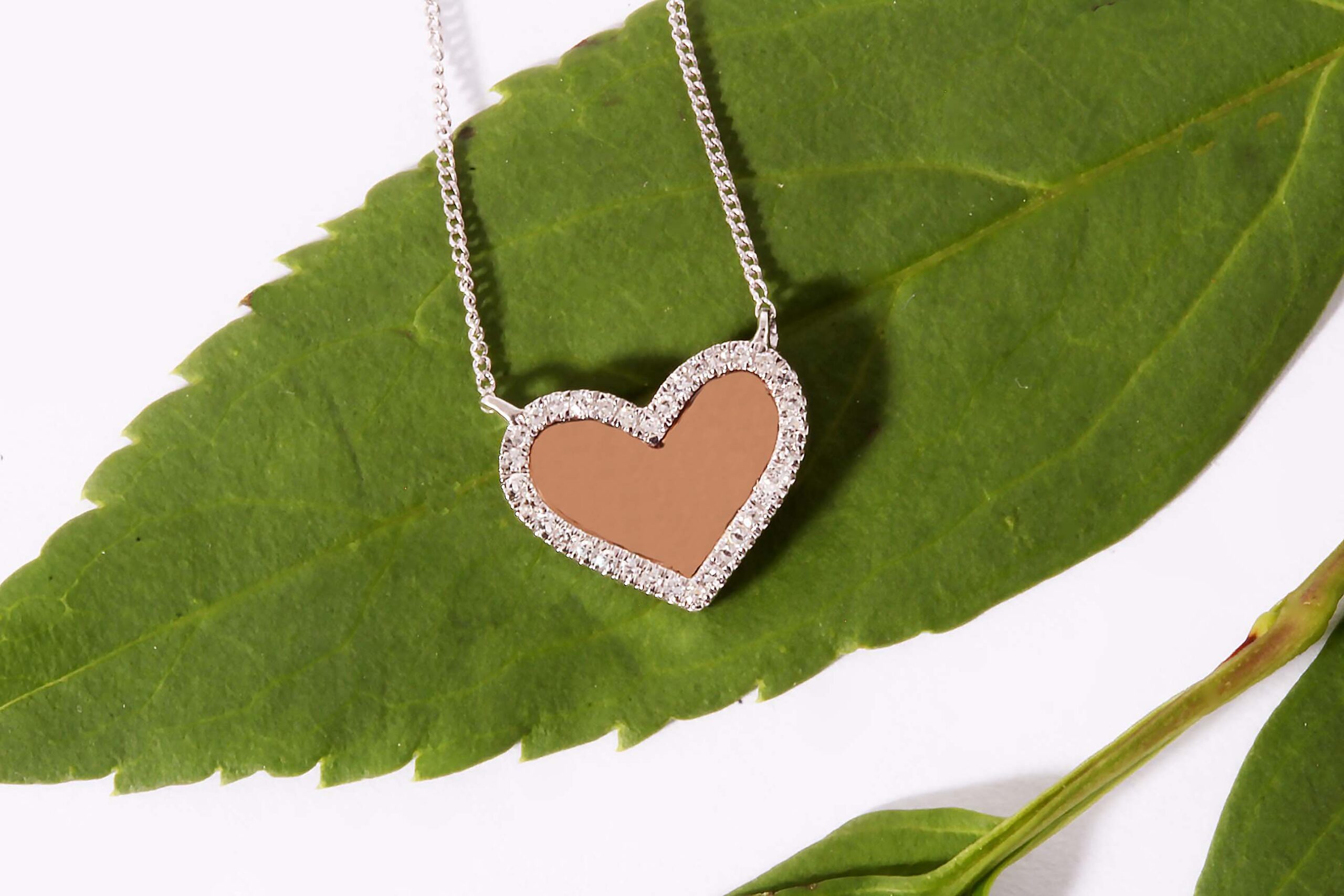 Pink with WG Chain Diamond Heart Flat Rose back Panel .06 measuring 11 x 9 MM #9774