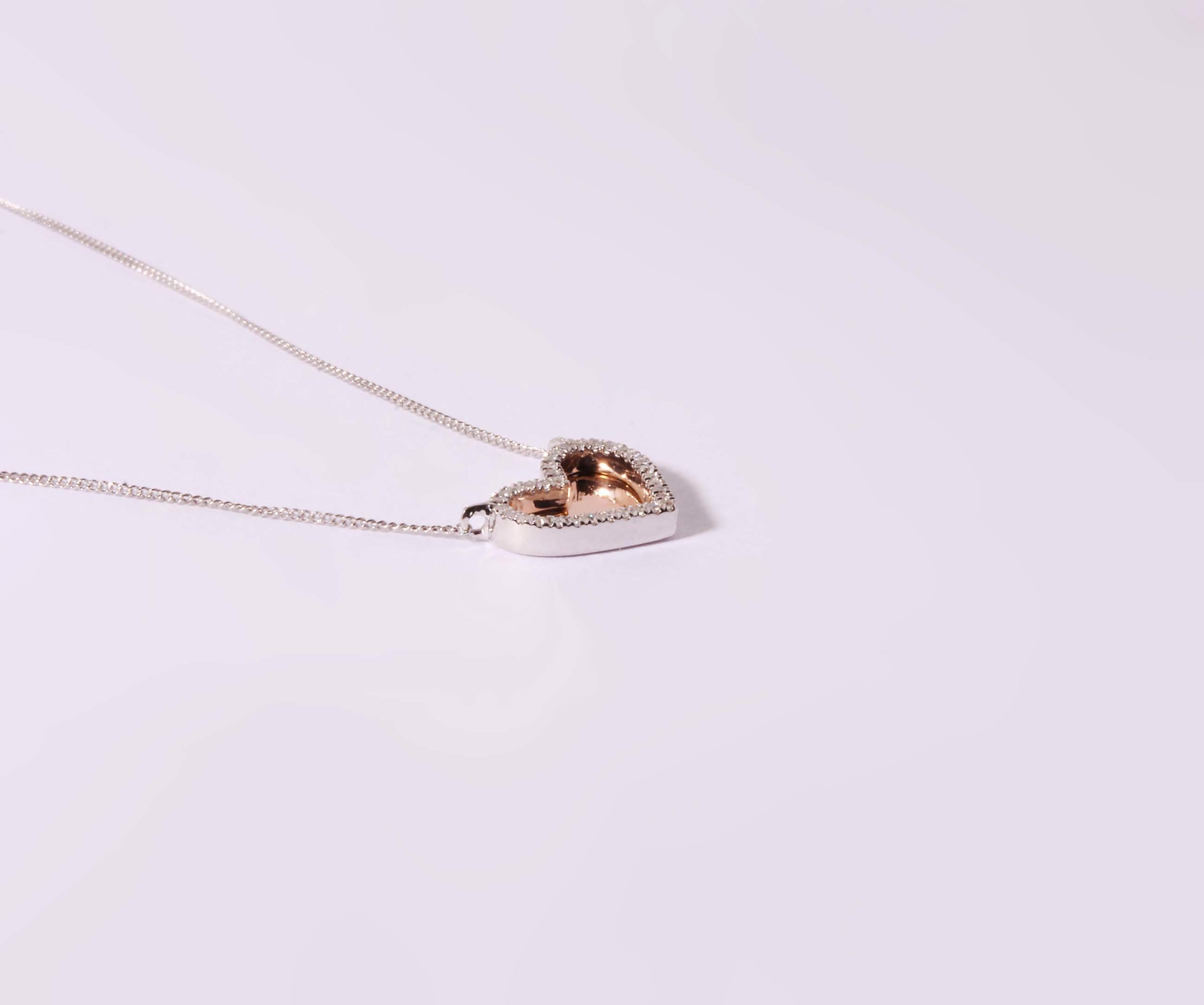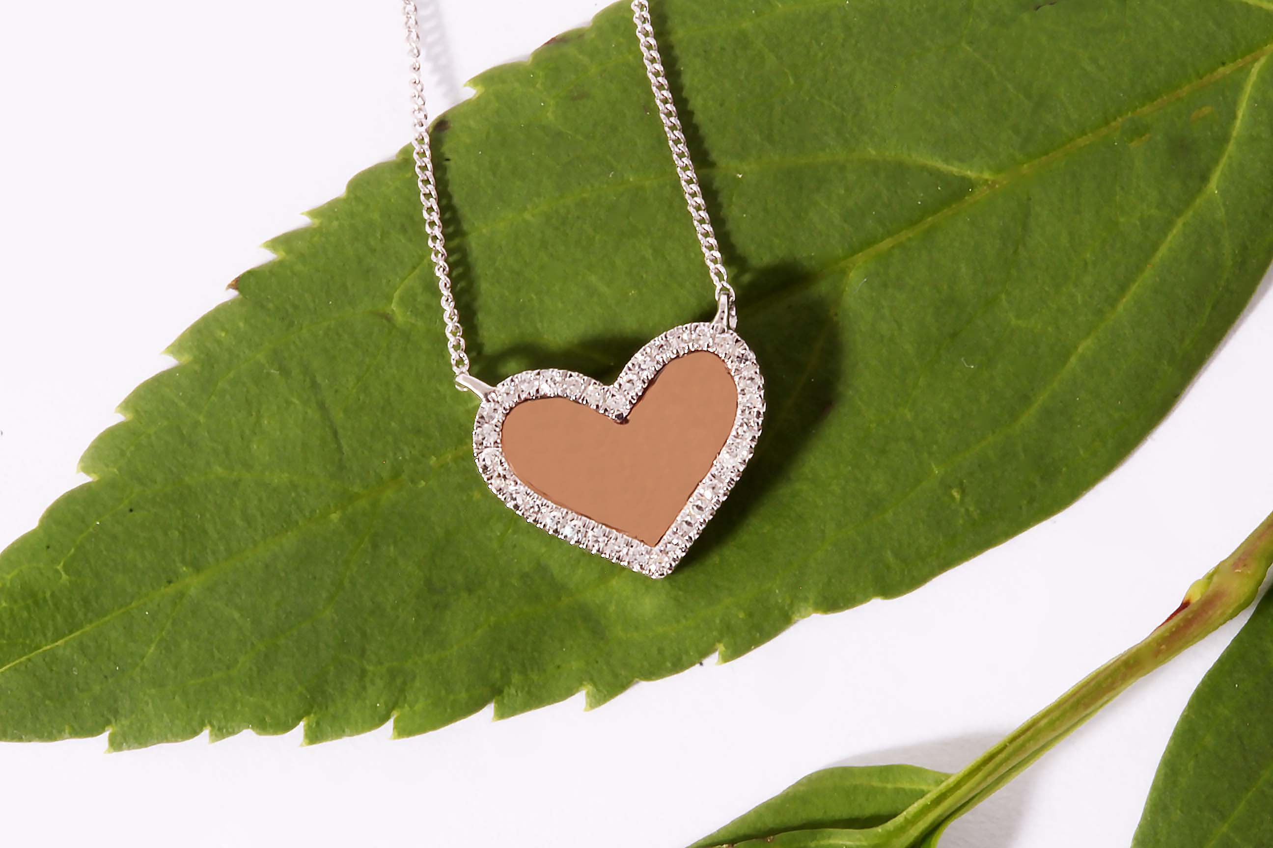 Pink with WG Chain Diamond Heart Flat Rose back Panel .06 measuring 11 x 9 MM #160-00085