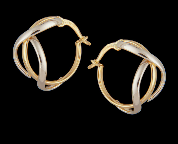 Polished Twisted Hoop Earrings Made of 14K Two Tone Gold – Stock# 8413