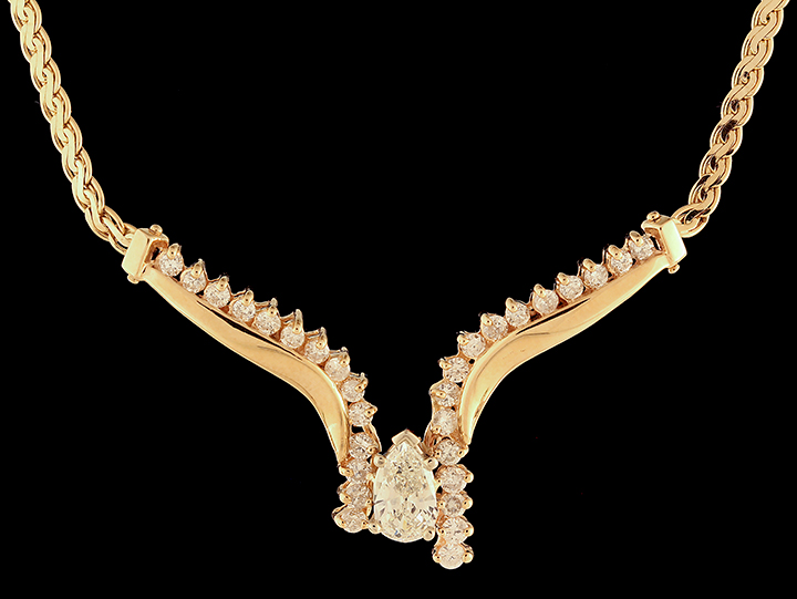 Diamond (1.5ctw) Chevron Pendant in 14K Yellow Gold – Stock# 7675