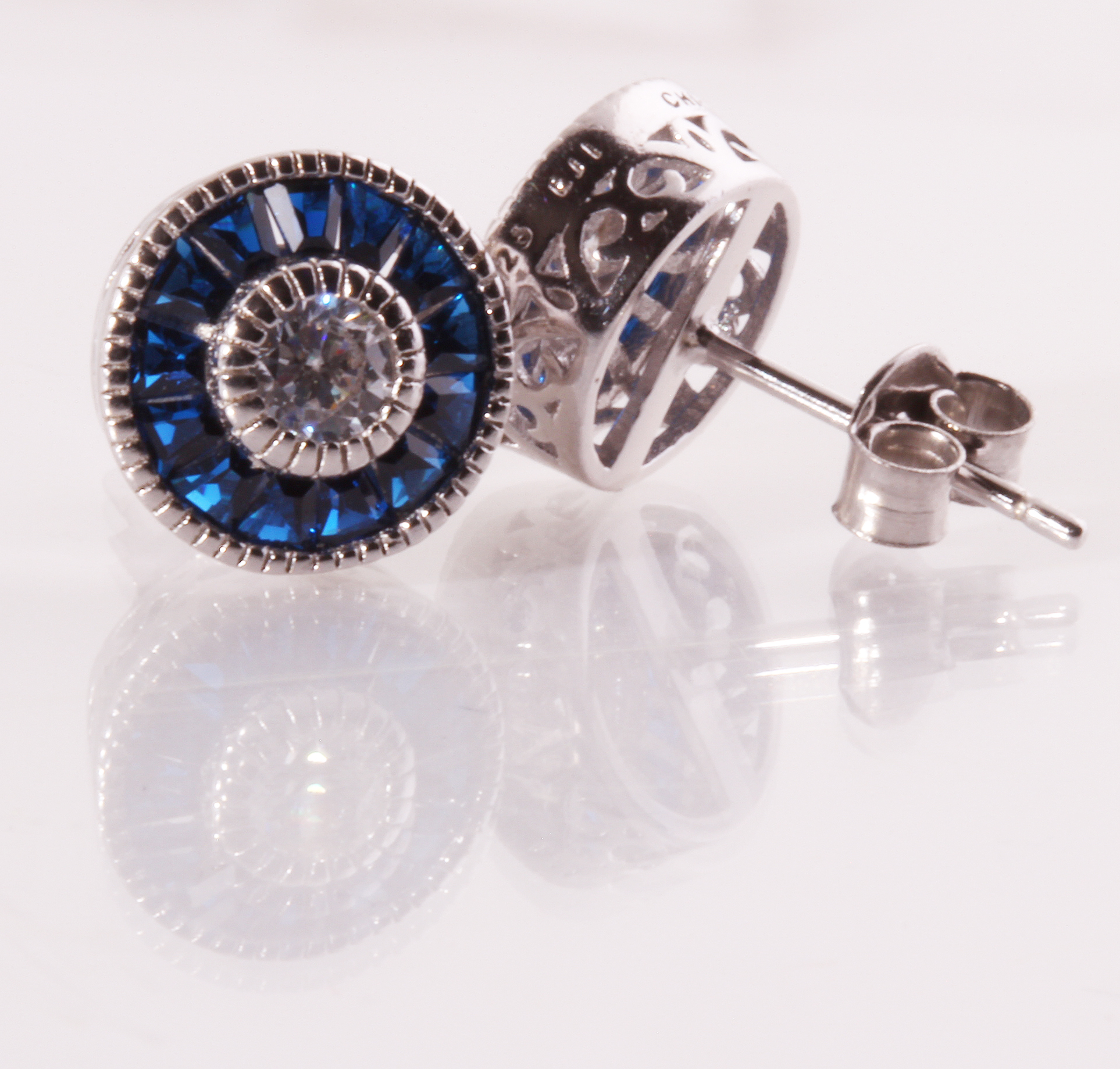 Rae & Jade Estate Look Blue Spinel and Cubic Zirconium Designer Fashion Post Earrings 9974
