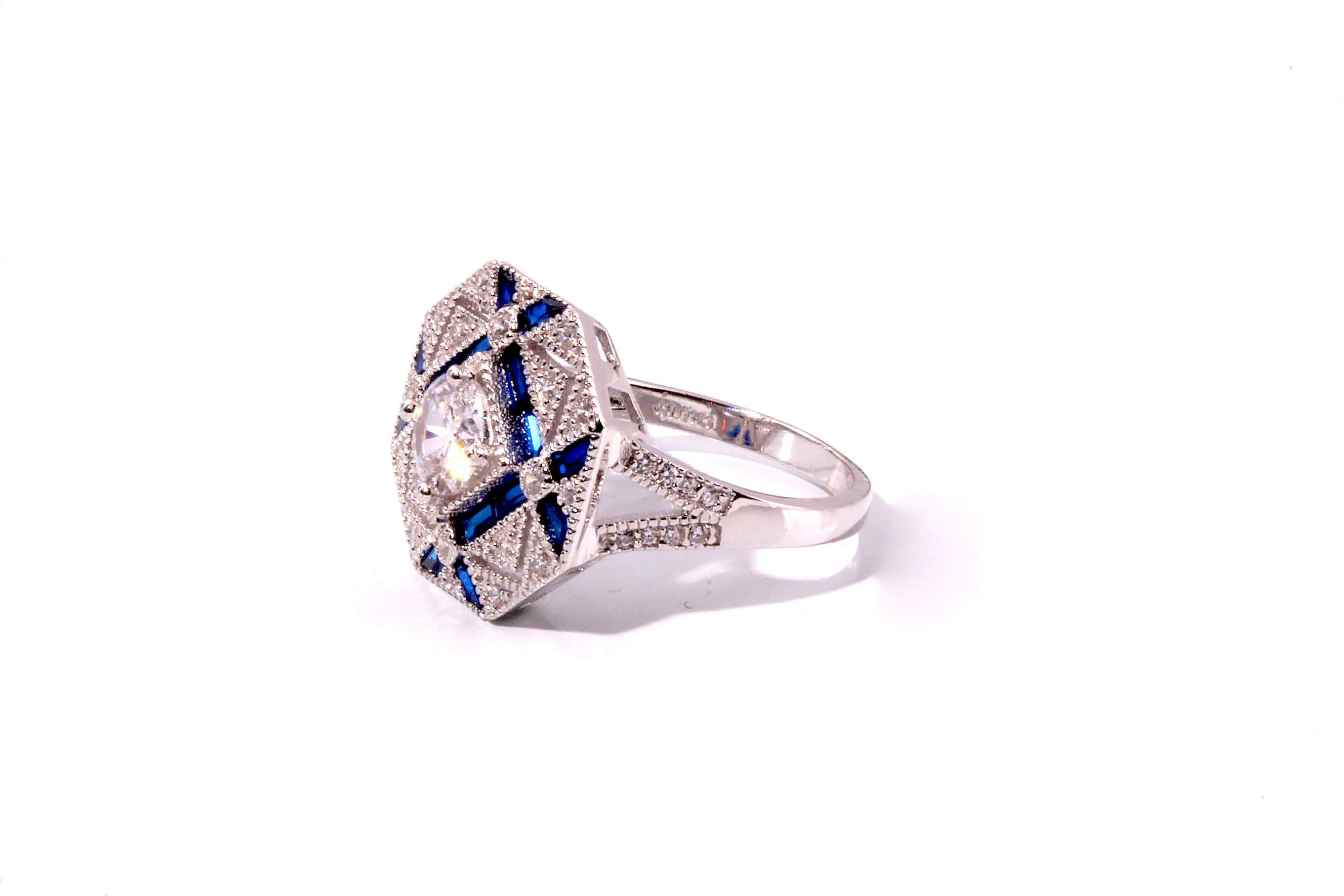 “Rae & Jade” Octagon Shape Lab Spinel and CZ Fashion Estate Look Ring #10459 16mm X 17mm