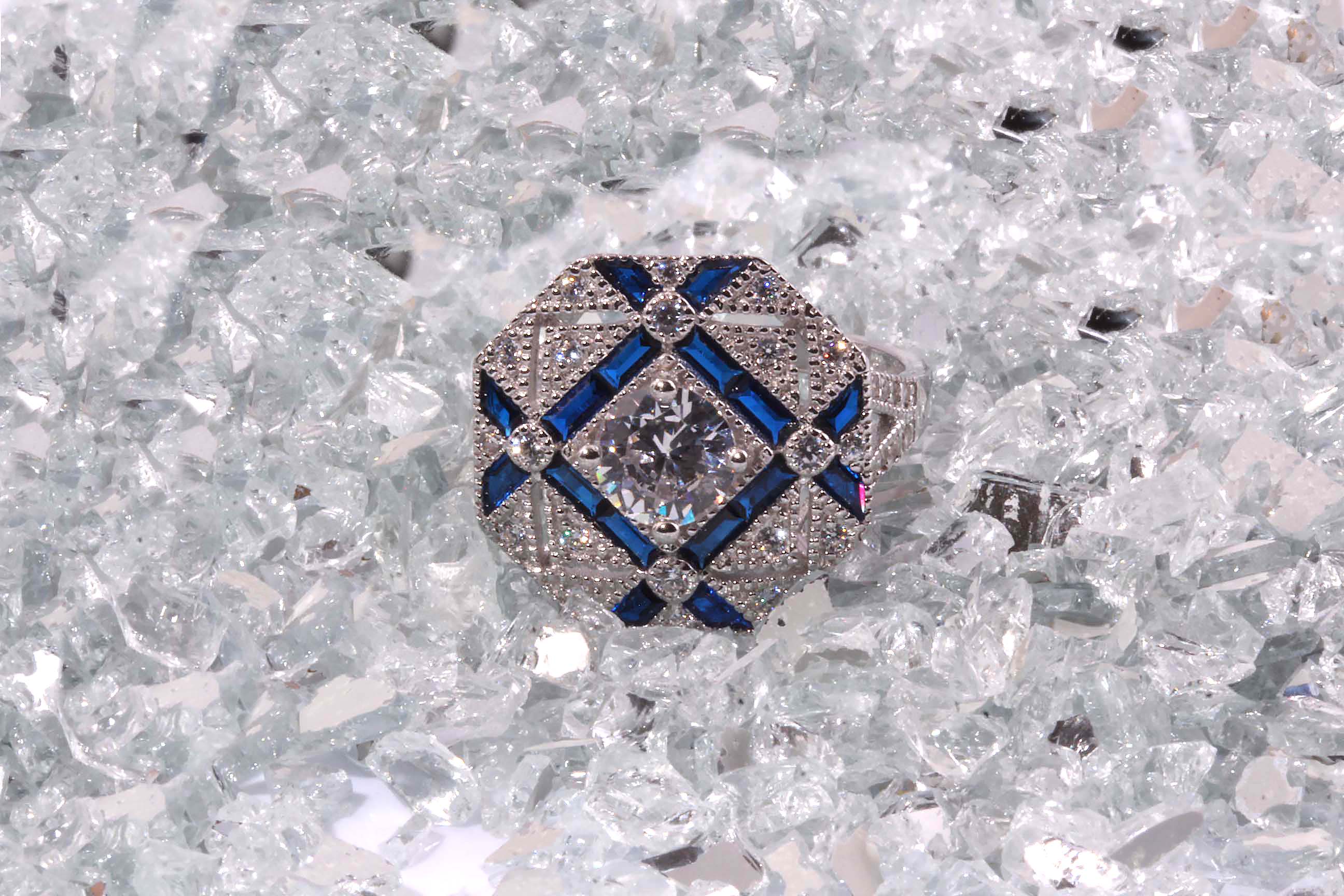 “Rae & Jade” Octagon Shape Lab Spinel and CZ Fashion Estate Look Ring 17 x 17 MM with 6.5MM Center Stone